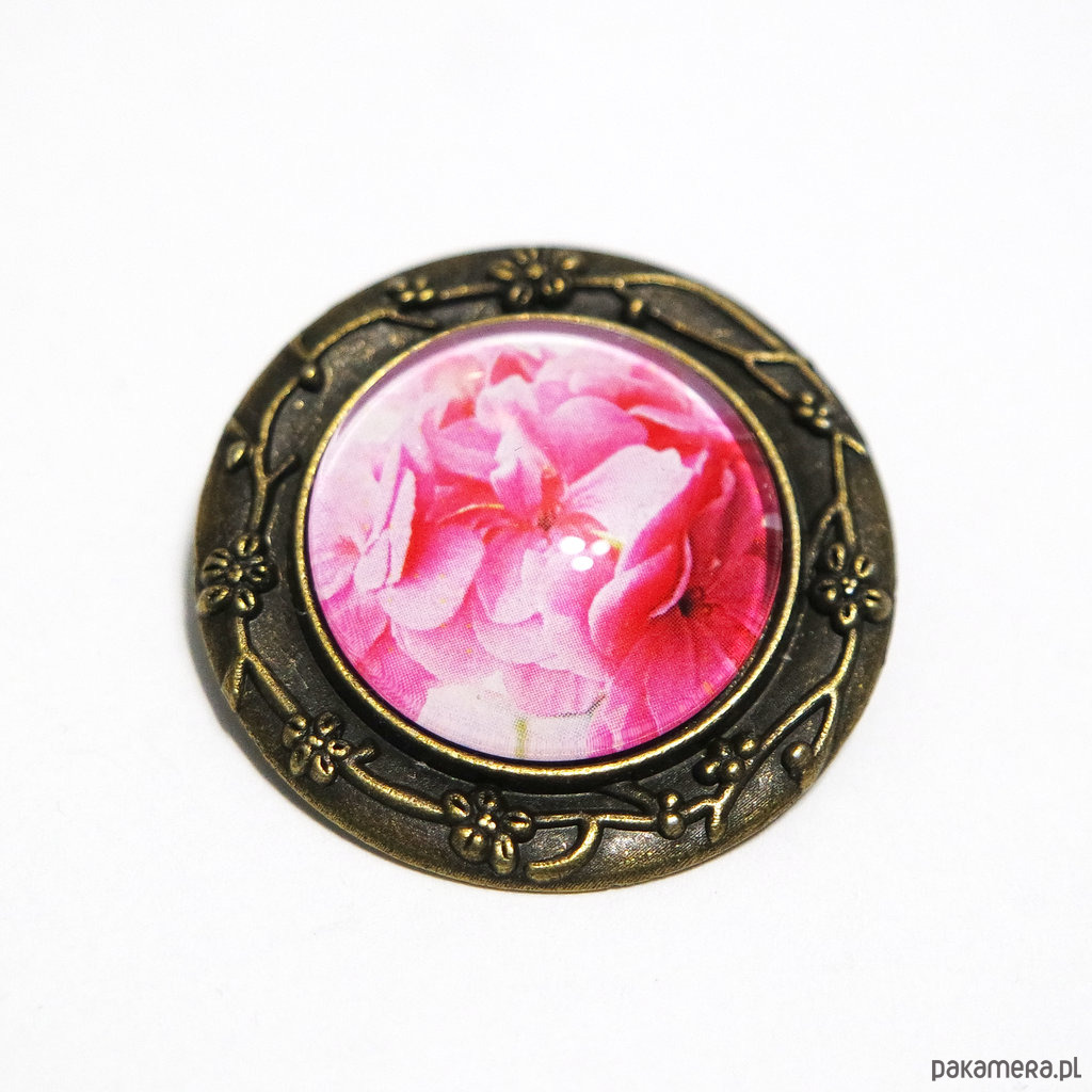 Oryginalna broszka w zdobionej oprawie z naszą autorską grafiką.