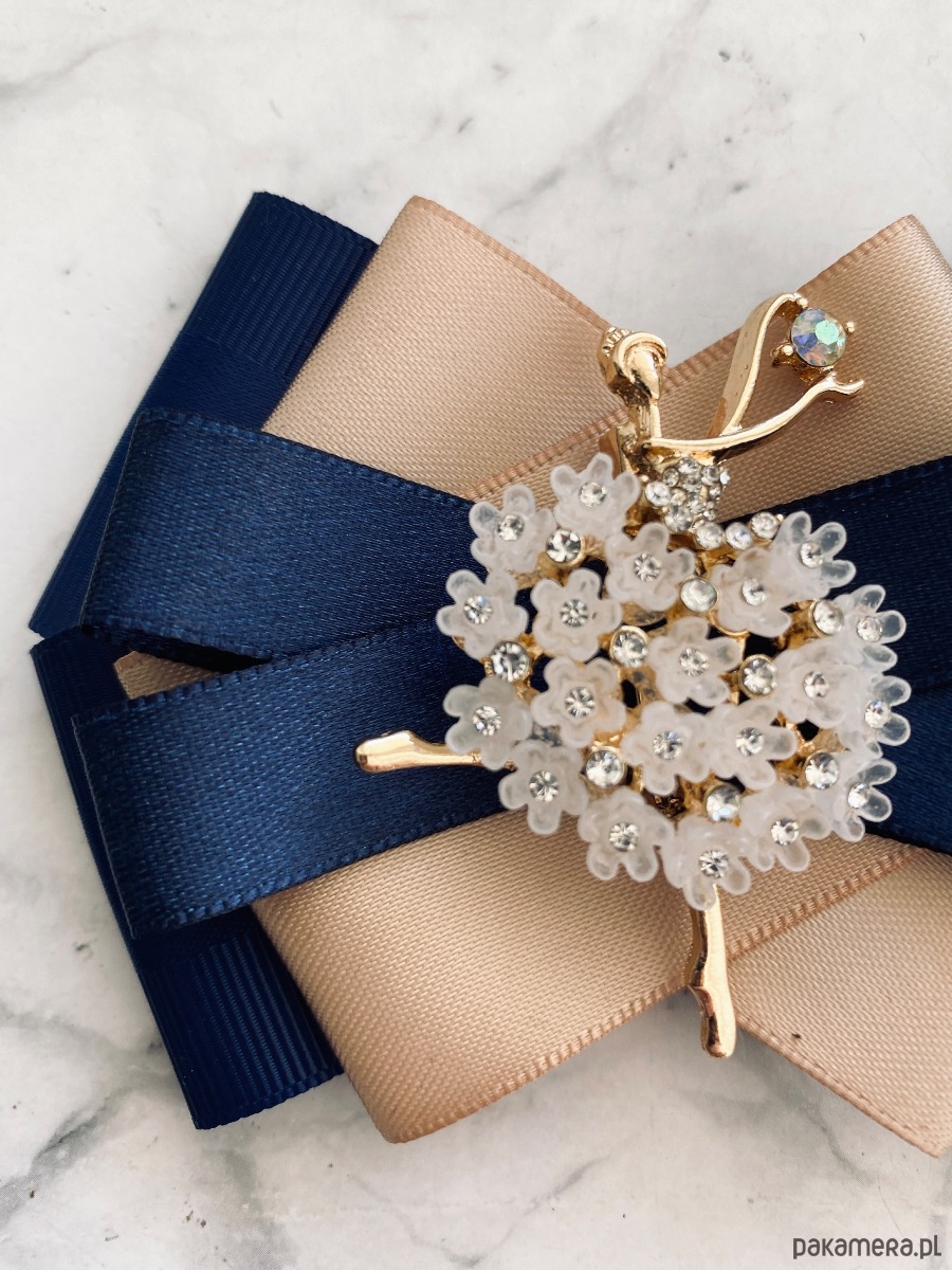 Broszka wykonana z wysokiej jakości taśm i dodatków.