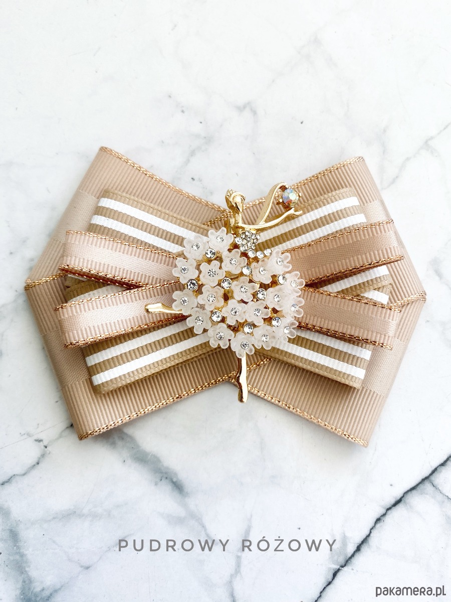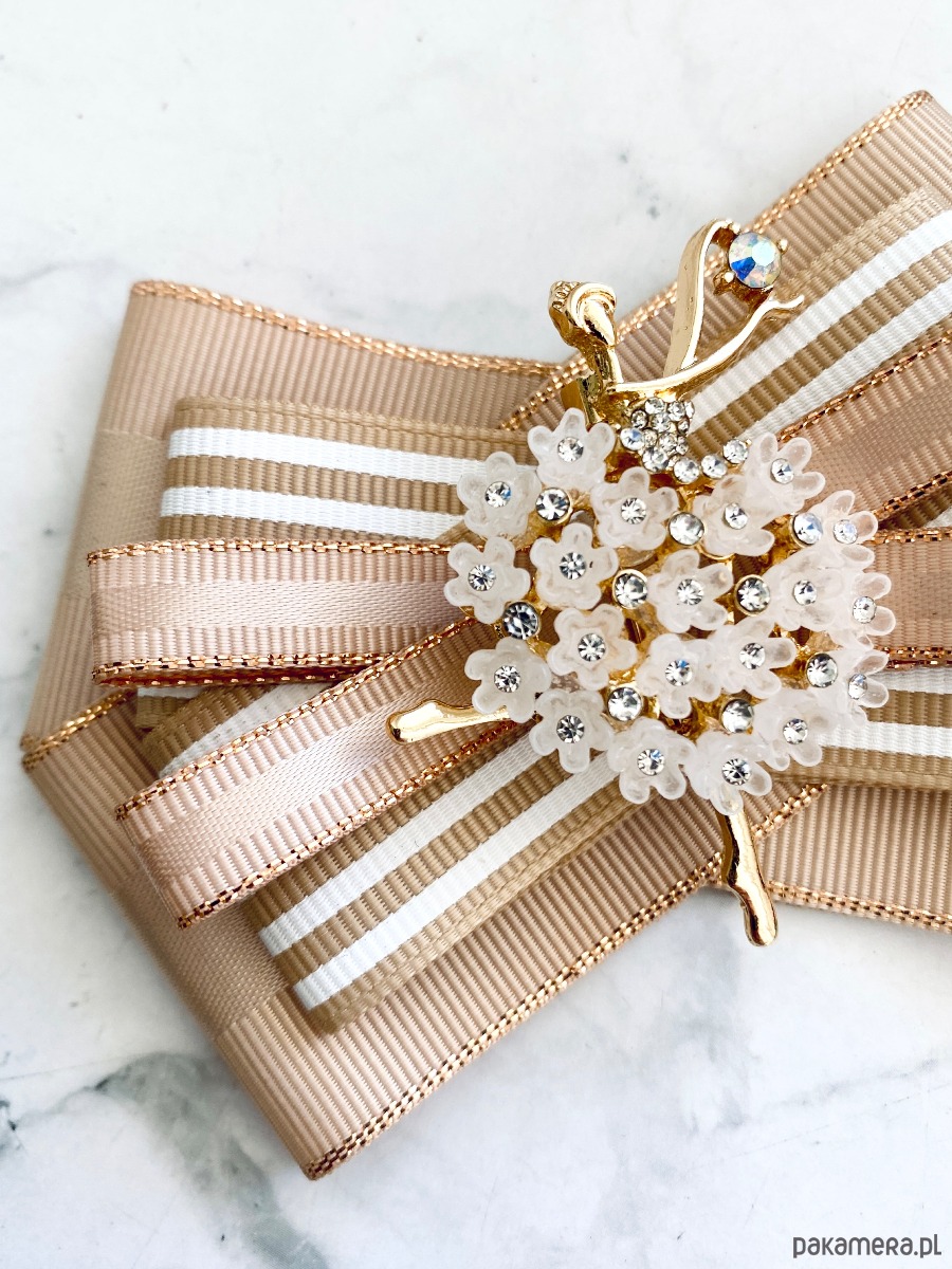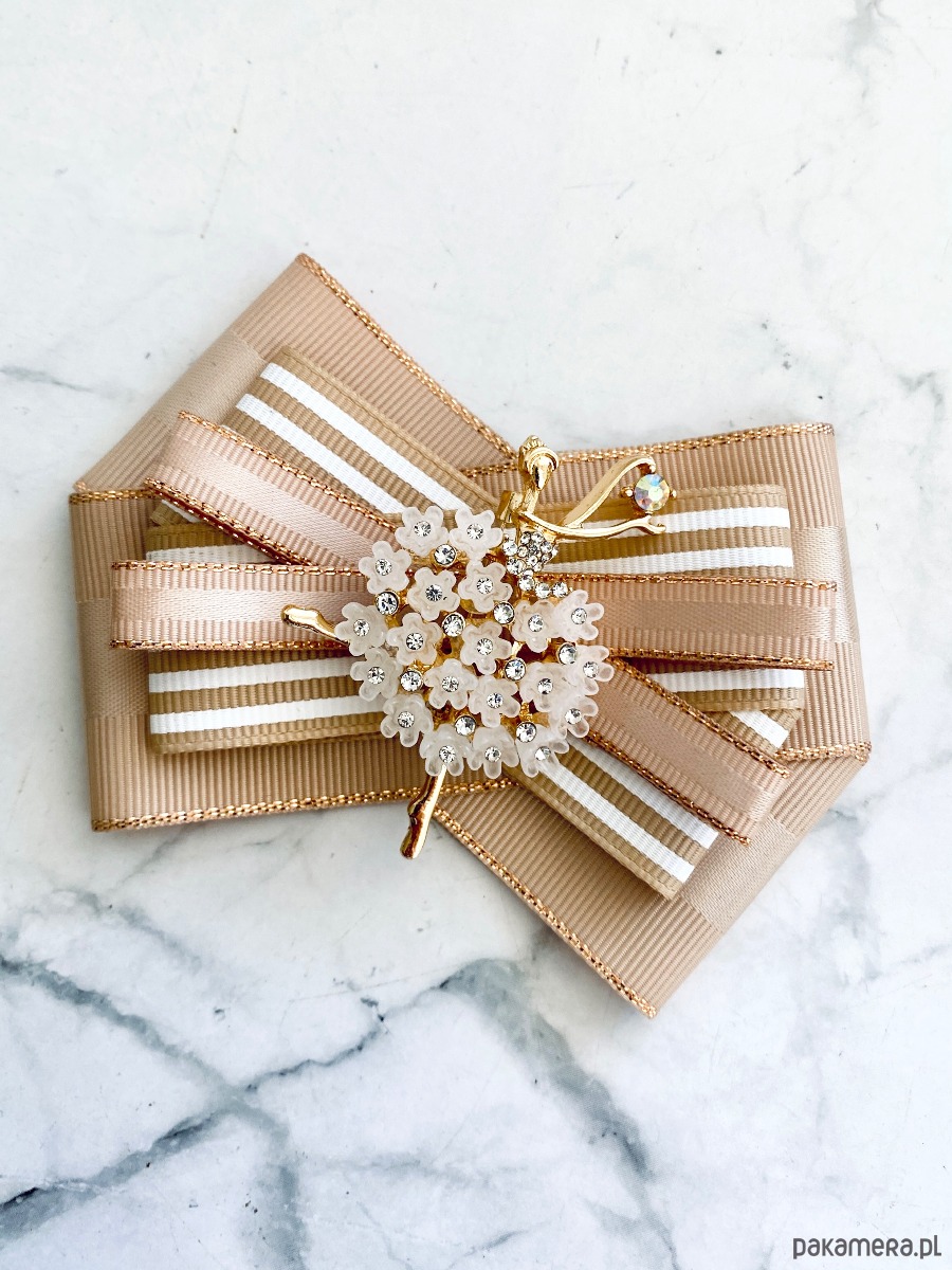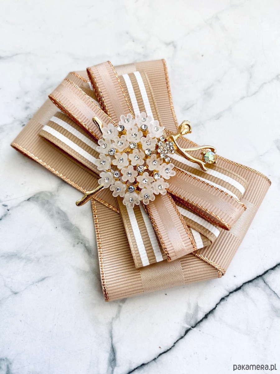 Broszka wykonana z wysokiej jakości taśm i dodatków.