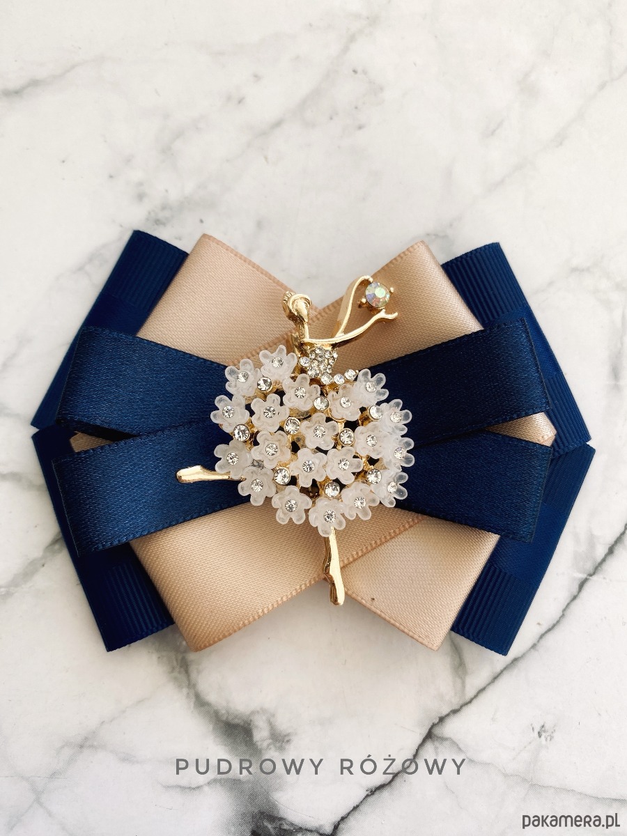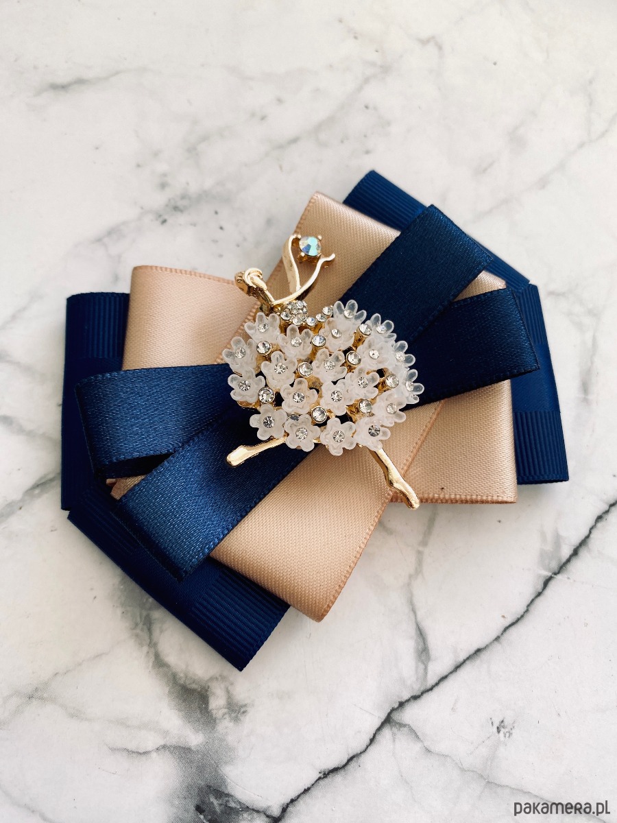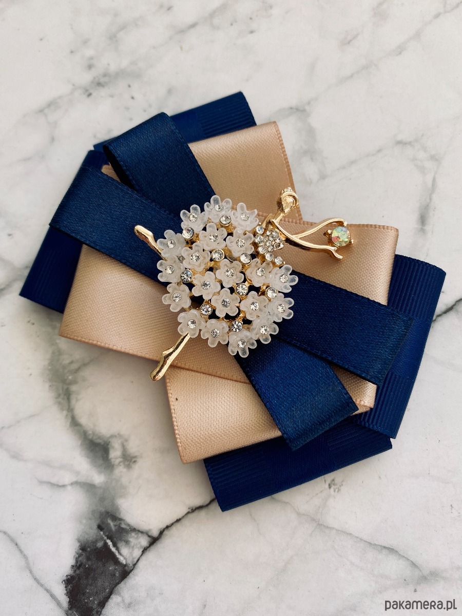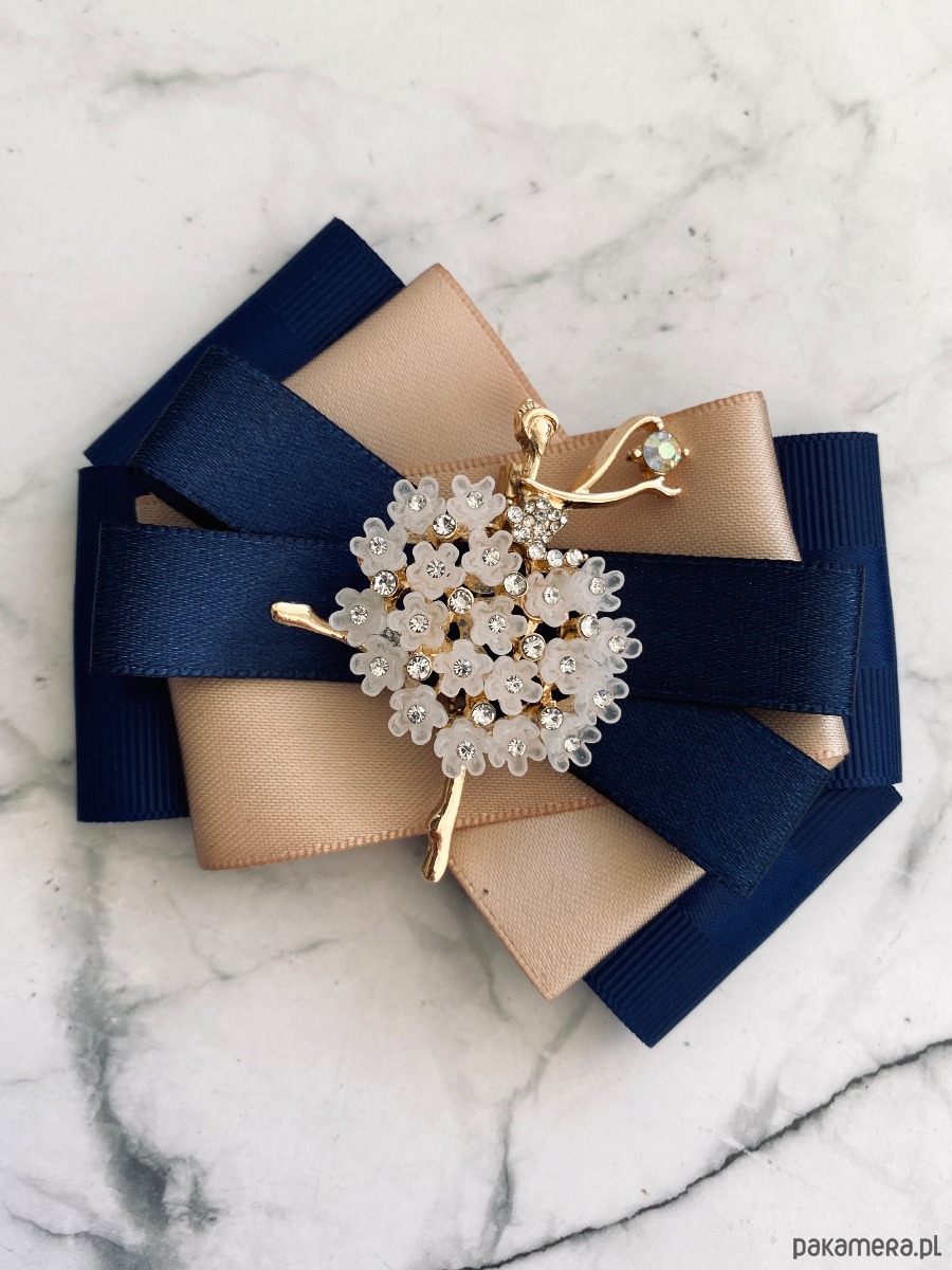 Broszka wykonana z wysokiej jakości taśm i dodatków.