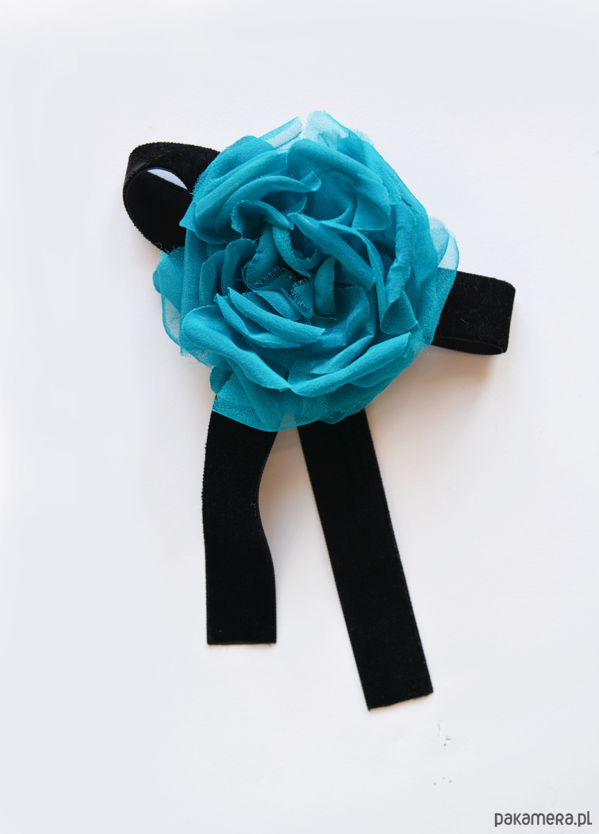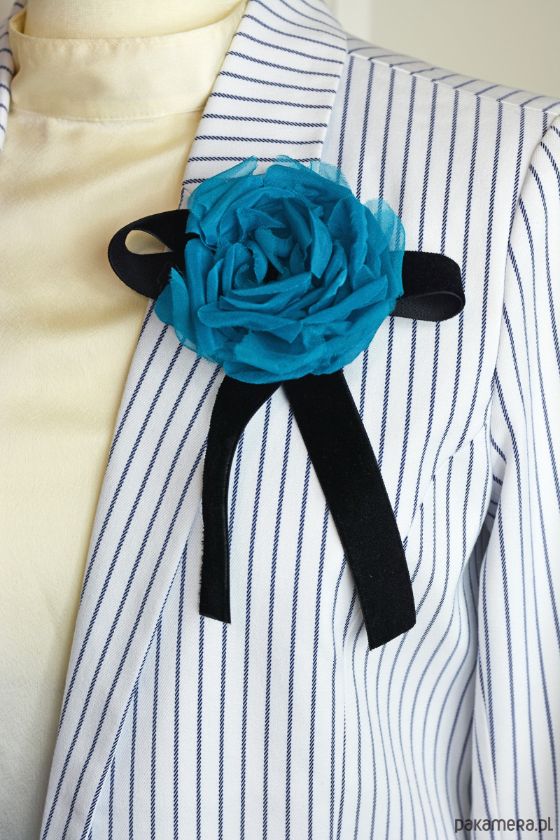 Unikatowa broszka z jedwabnym turkusowym kwiatem.