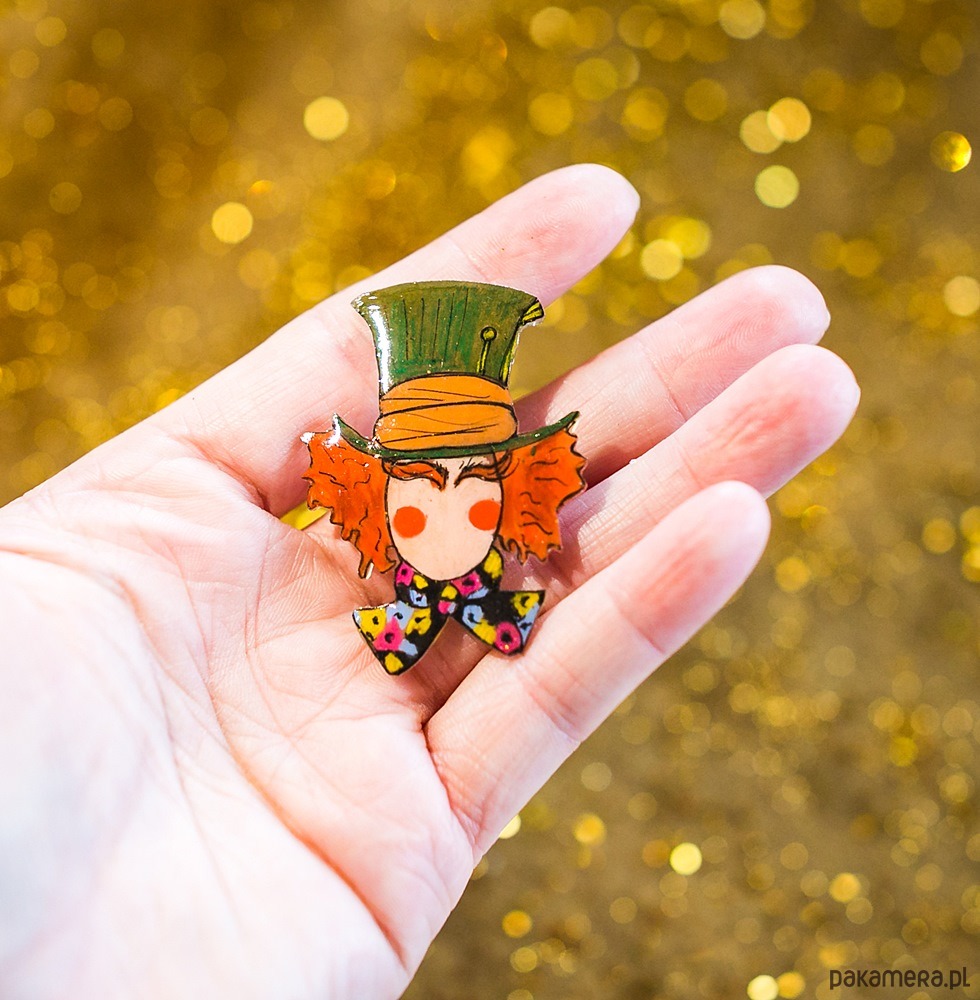 Broszka z kapelusznikiem została zainspirowana bajką " Alicja w Krainie Czarów"