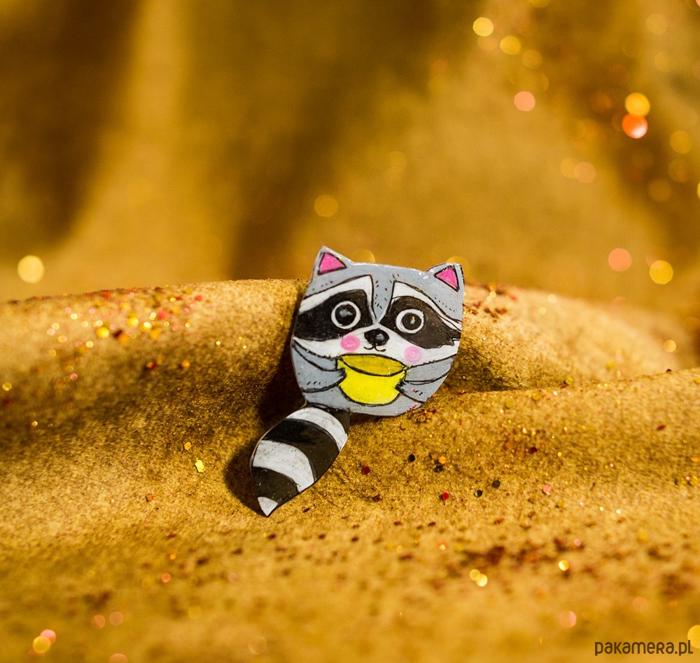 Broszka z szopem Lucjanem