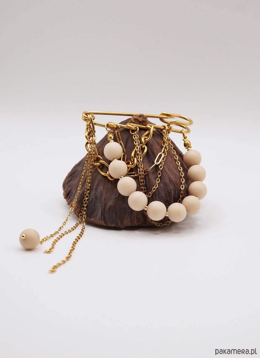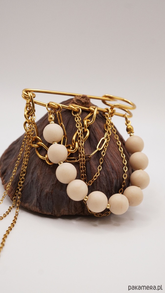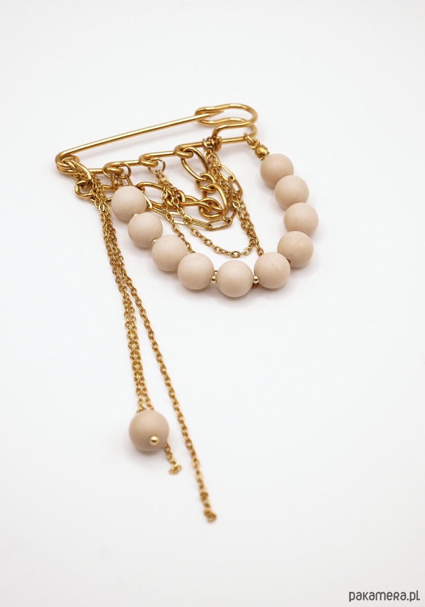 Materiał: Baza w formie bezpiecznej agrafki oraz ozdobne łańcuszki wykonane są z wysokiej jakości stali szlachetnej. Materiał ten nie rdzewieje, nie zmienia koloru i jest bezpieczny dla alergików.