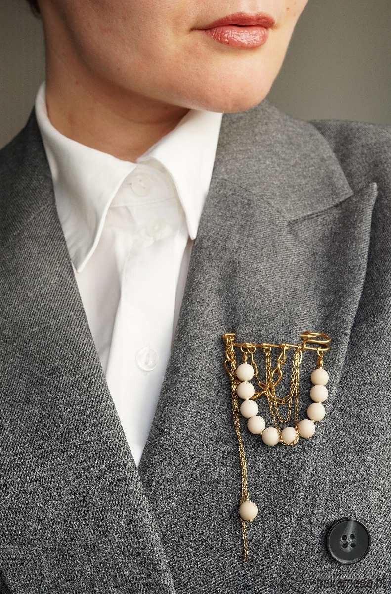 Uniwersalność: Idealnie komponuje się z naturalnymi tkaninami – lnem, wełną czy bawełną. Będzie stylowym akcentem na grubym kardiganie, lnianej marynarce lub zimowym płaszczu.