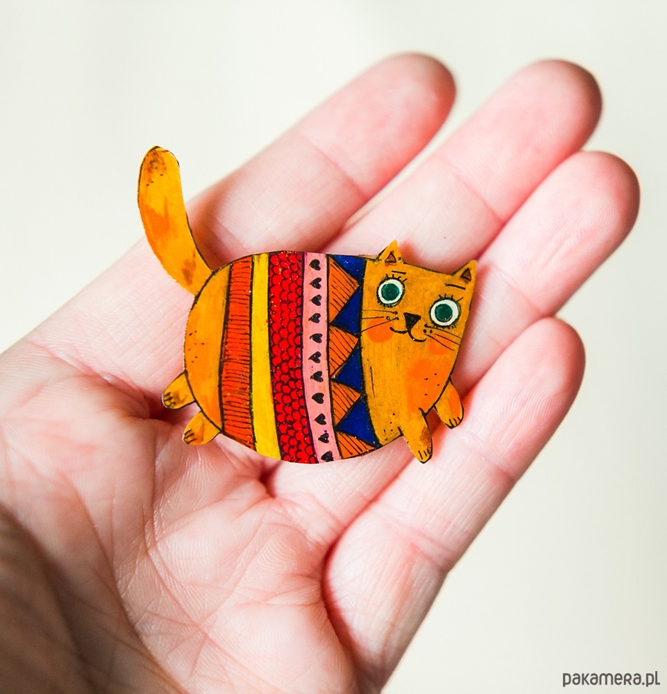 Piękna broszka ręcznie rysowana, zabezpieczona lakierem ekologicznym. Powierzchnia broszki jest błyszcząca.