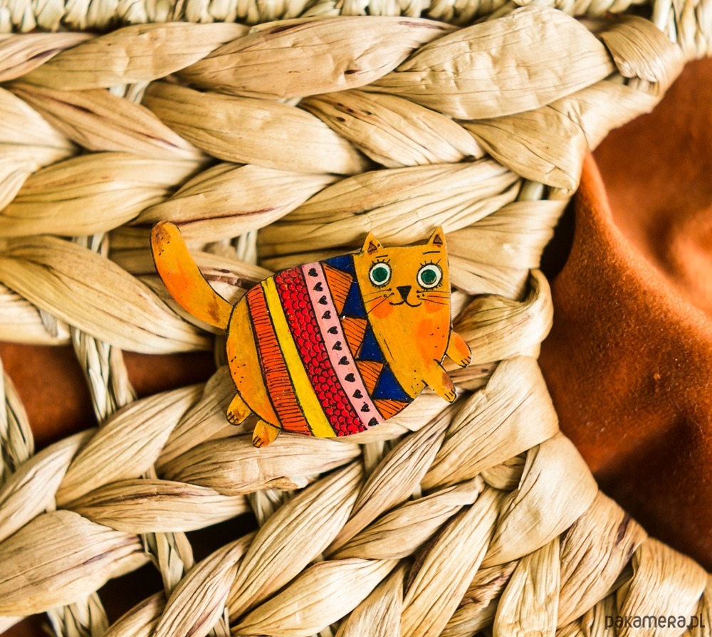 Broszka „Żółty kot w swetrze” – idealna dla miłośników kotów, swetrów i rzeczy, które poprawiają humor bez wysiłku. Starannie zapakowana w tekturowy kartonik, gotowa do wręczenia (lub zatrzymania dla siebie).