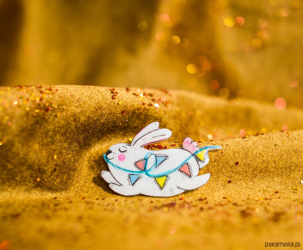 Piękna broszka ręcznie rysowana, zabezpieczona lakierem ekologicznym. Powierzchnia broszki jest gładka i błyszcząca.