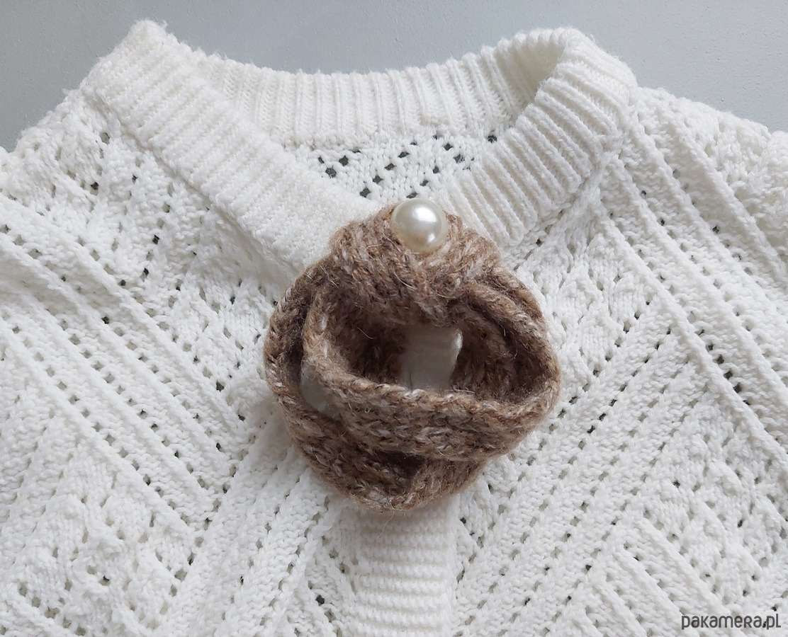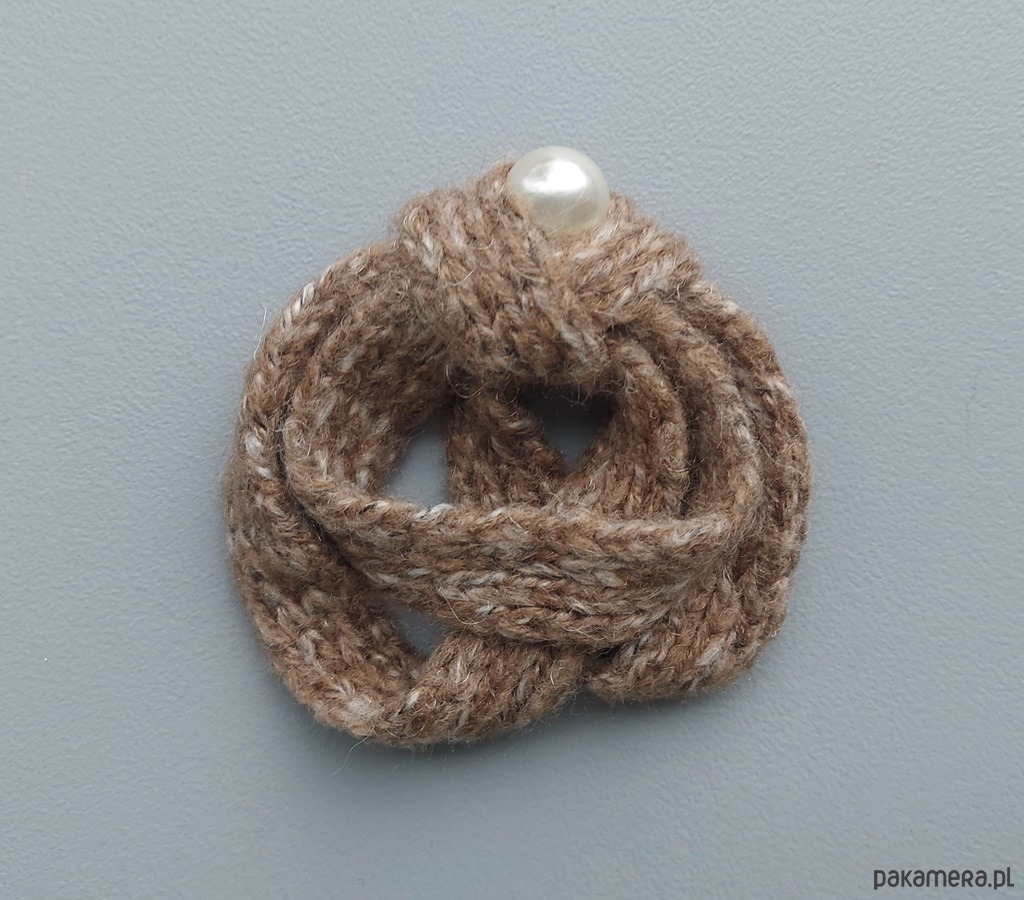 Unikatowa broszka, wykonana z melanżowej włóczki w ciepłych odcieniach kakao. to doskonały sposób, by ożywić nawet najprostsze stylizacje. Jej zawadiacki charakter przyciąga wzrok, a duża perła dodaje elegancji, wprowadzając subtelną nutę wyrafinowania. Broszka idealnie sprawdzi się jako dodatek do sweterka, klapy żakietu czy płaszcza, nadając im oryginalności i unikalnego stylu.