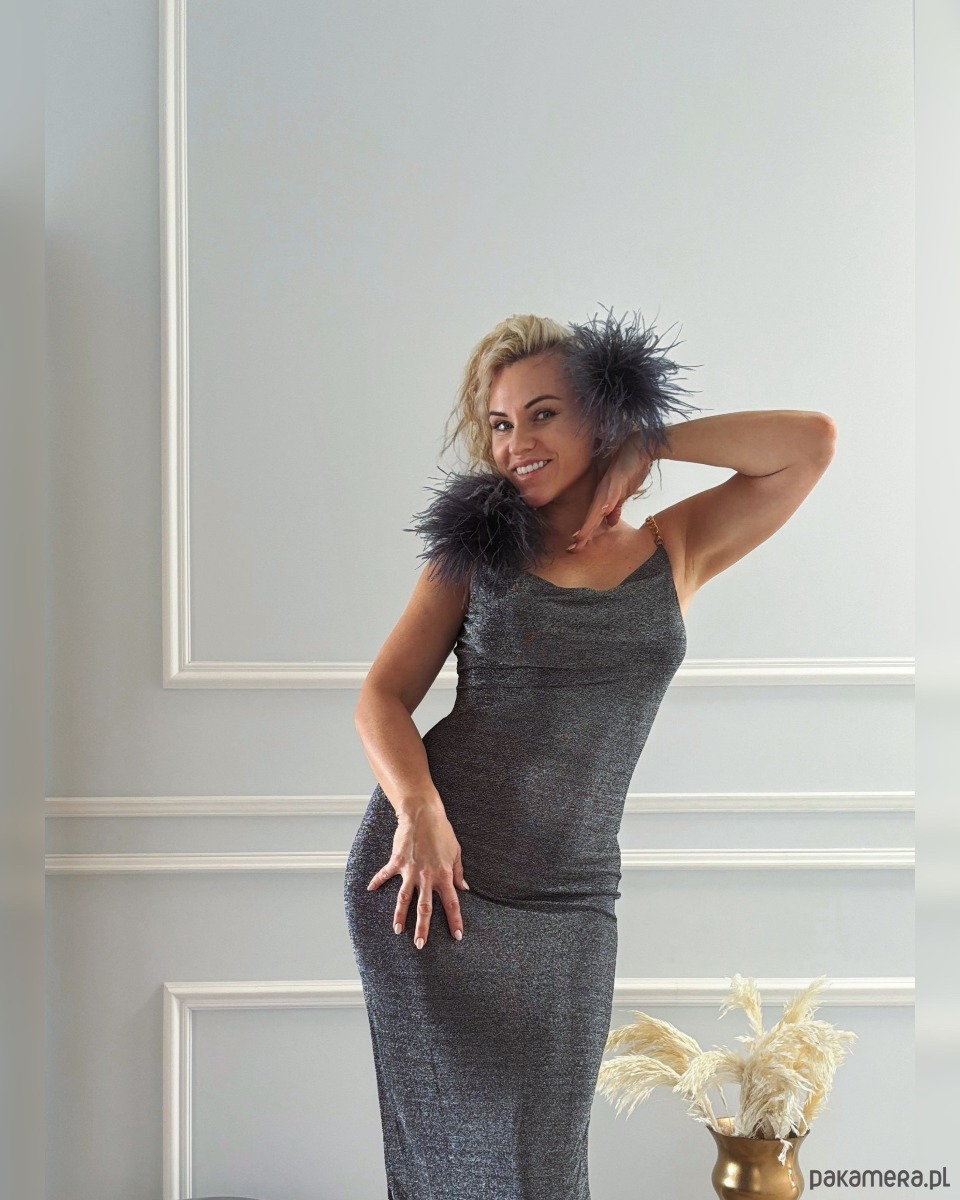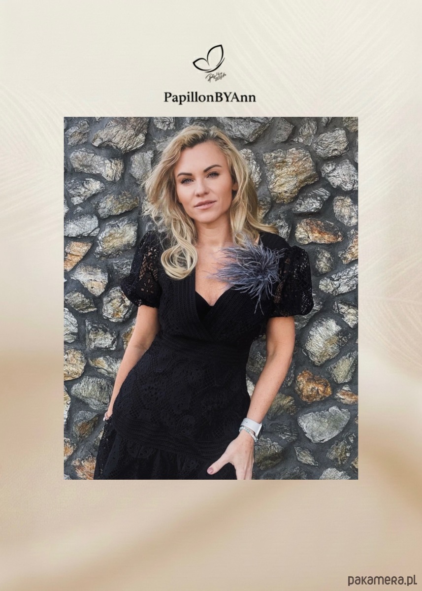 Ta broszka, pełniąca jednocześnie rolę fascynatora do włosów, została wykonana z delikatnych strusich piórek, dodając subtelnej nuty zmysłowości nawet najprostszym koszulom, marynarkom, sukienkom czy t-shirtom. Doskonała do podkreślenia wieczornego charakteru stroju lub odświeżenia codziennego looku. Jest niezwykle modnym dodatkiem, który pięknie faluje w ruchu