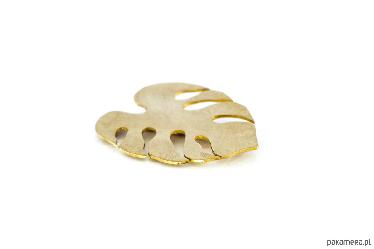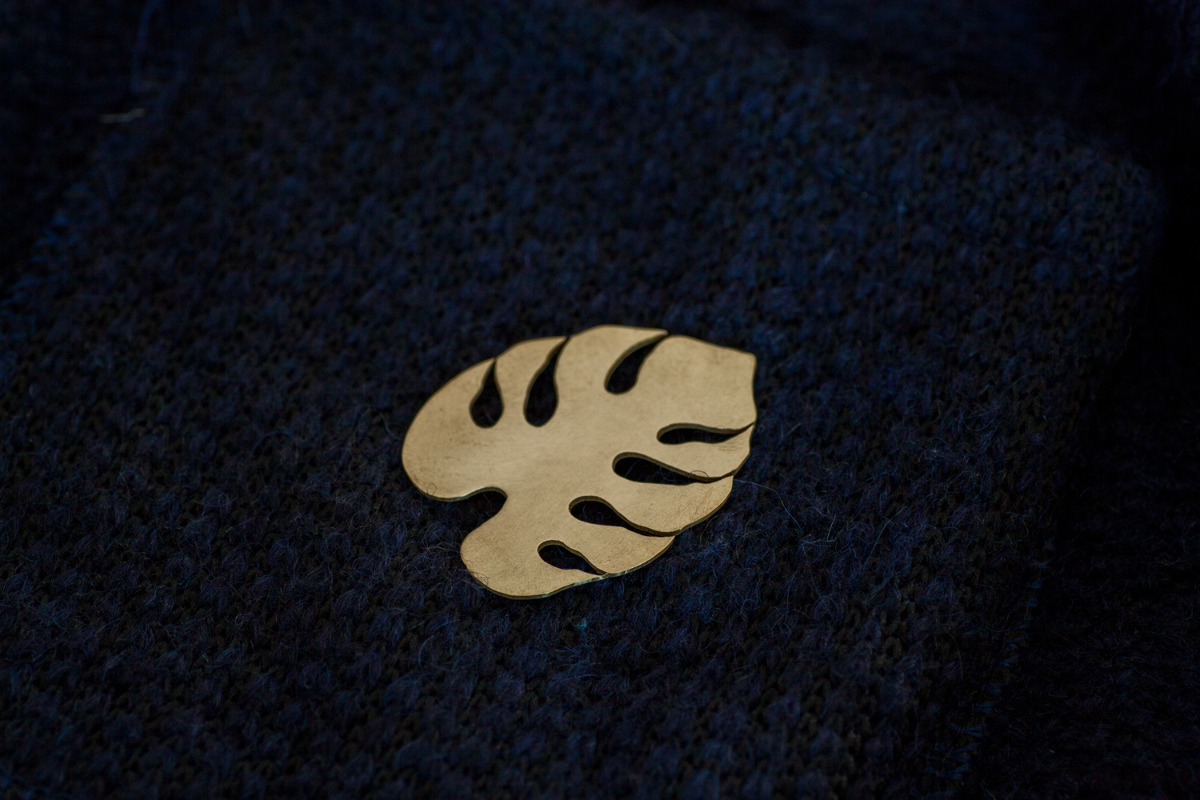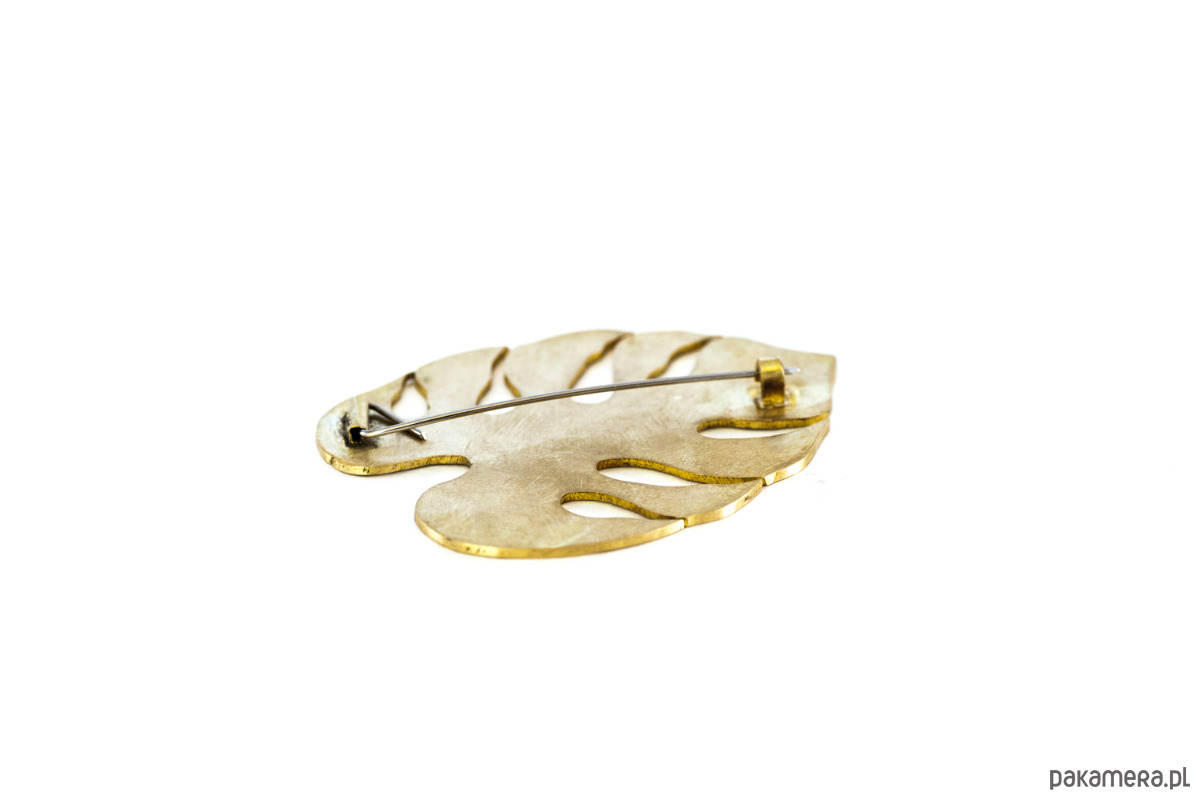 Broszka w kształcie liścia monstery.