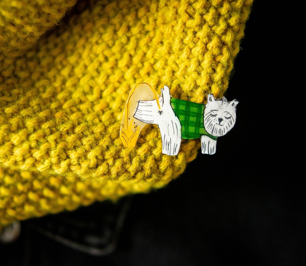 Zabawna przypinka, ręcznie rysowana, zabezpieczona lakierem ekologicznym. Na jej lakierowanej powierzchni mogą występować małe pęcherzyki powietrza.