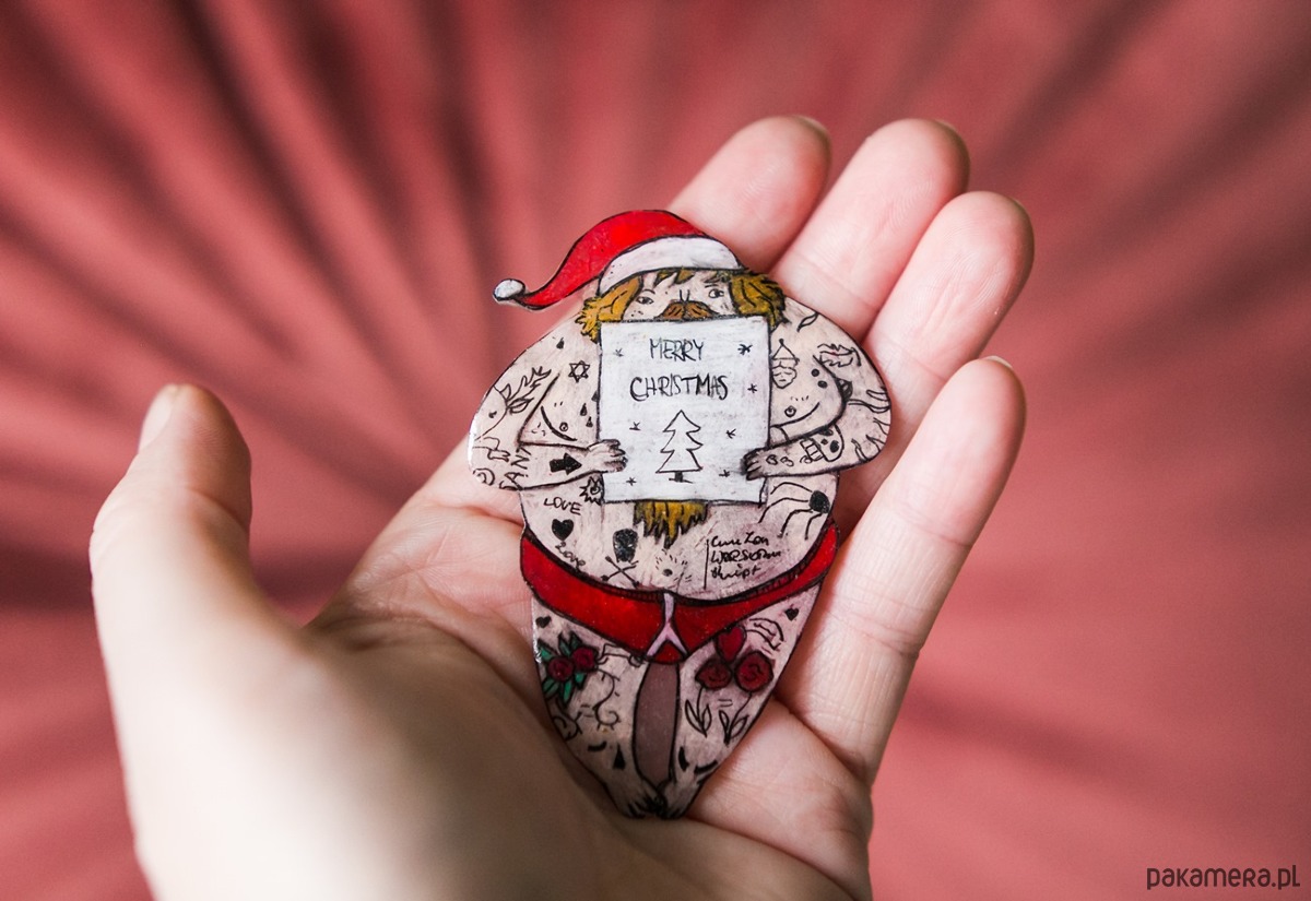 Piękna broszka ręcznie rysowana, zabezpieczona lakierem ekologicznym. Powierzchnia broszki jest błyszcząca, na lakierowanej powierzchni broszki mogą występować małe pęcherzyki powietrza,które są naturalne w procesie tworzenia tą techniką.