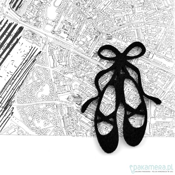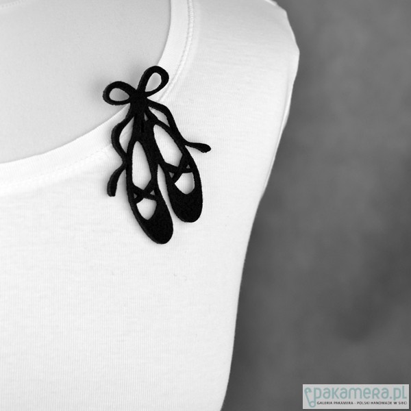 broszka filcowa w kształcie baletek - model: FeltBallerinas - kolekcja: pinMe - kształt: baletki - kolor: czarny (inne dostępne patrz próbnik) - wymiary: 8 cm x 5,5 cm - materiał: filc 4 mm - zapięcie: broszkowe