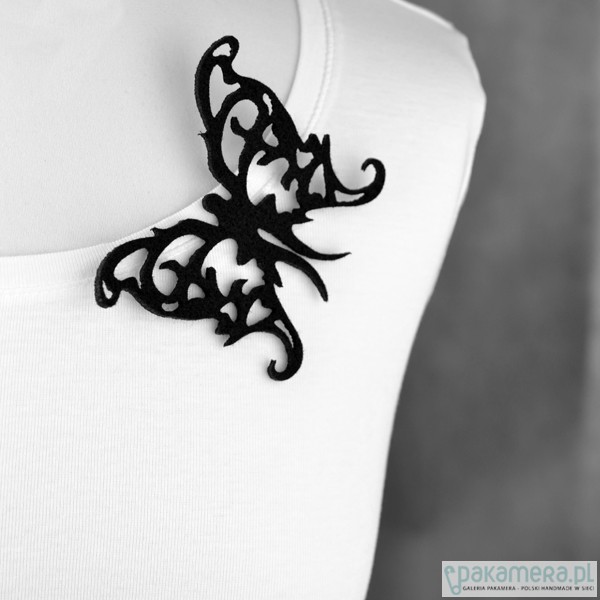 broszka filcowa w kształcie motyla - model: FeltButterfly 3 - kolekcja: pinMe - kształt: motyl - kolor: czarny (inne dostępne patrz próbnik) - wymiary: 10,5 cm x 8,5 cm - materiał: filc 4 mm - zapięcie: broszkowe