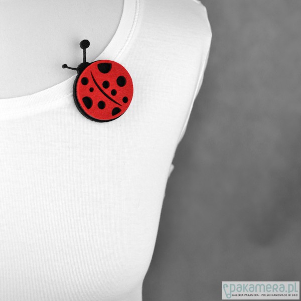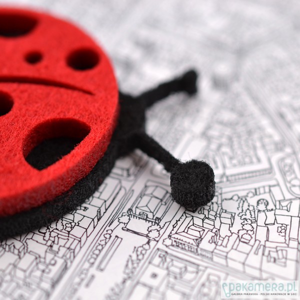 broszka filcowa w kształcie biedronki - model: FeltLadybird 3 - kolekcja: pinMe - kształt: biedronka - kolor: czarno-czerwone - wymiary: 5 cm x 6 cm - materiał: filc 4 mm - zapięcie: broszkowe