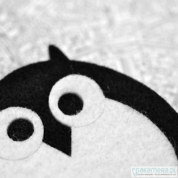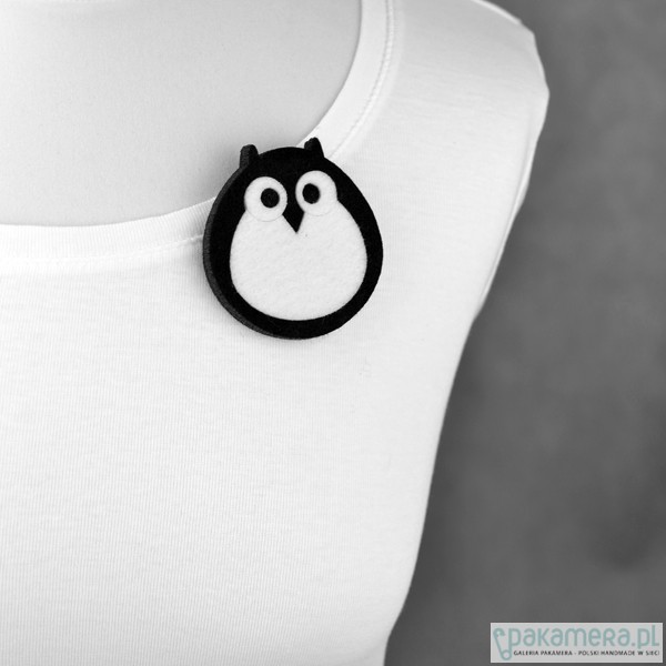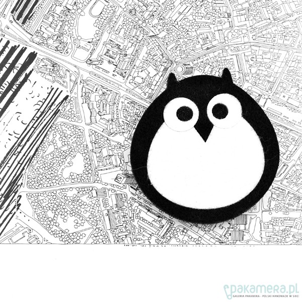 broszka filcowa w kształcie sowy - model: FeltOwl - kolekcja: pinMe - kształt: sowa - kolor: czarno-biały - wymiary: 6 cm x 6 cm - materiał: filc 4 mm - zapięcie: broszkowe