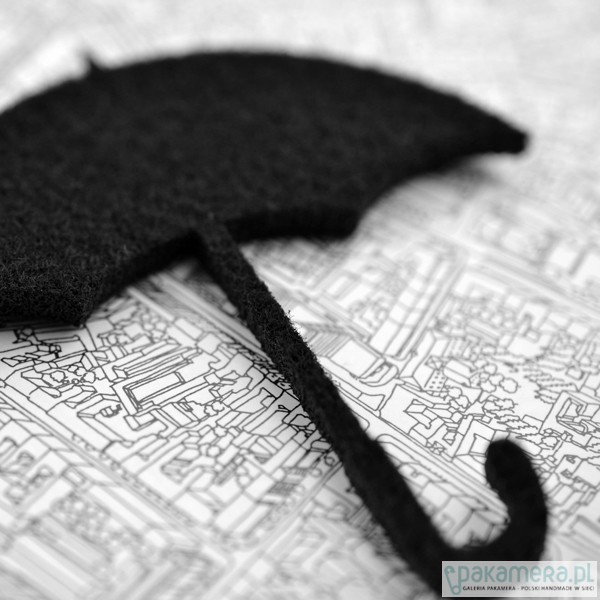 broszka filcowa w kształcie parasola - model: FeltUmbrella - kolekcja: pinMe - kształt: parasol - kolor: czarny (inne dostępne patrz próbnik) - wymiary: 8,5 cm x 9 cm - materiał: filc 4 mm - zapięcie: broszkowe