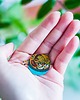 Przypinka zostanie zapakowana w tekturowy kartonik z wypełnieniem nawiązującym kolorystycznie do biżuterii.