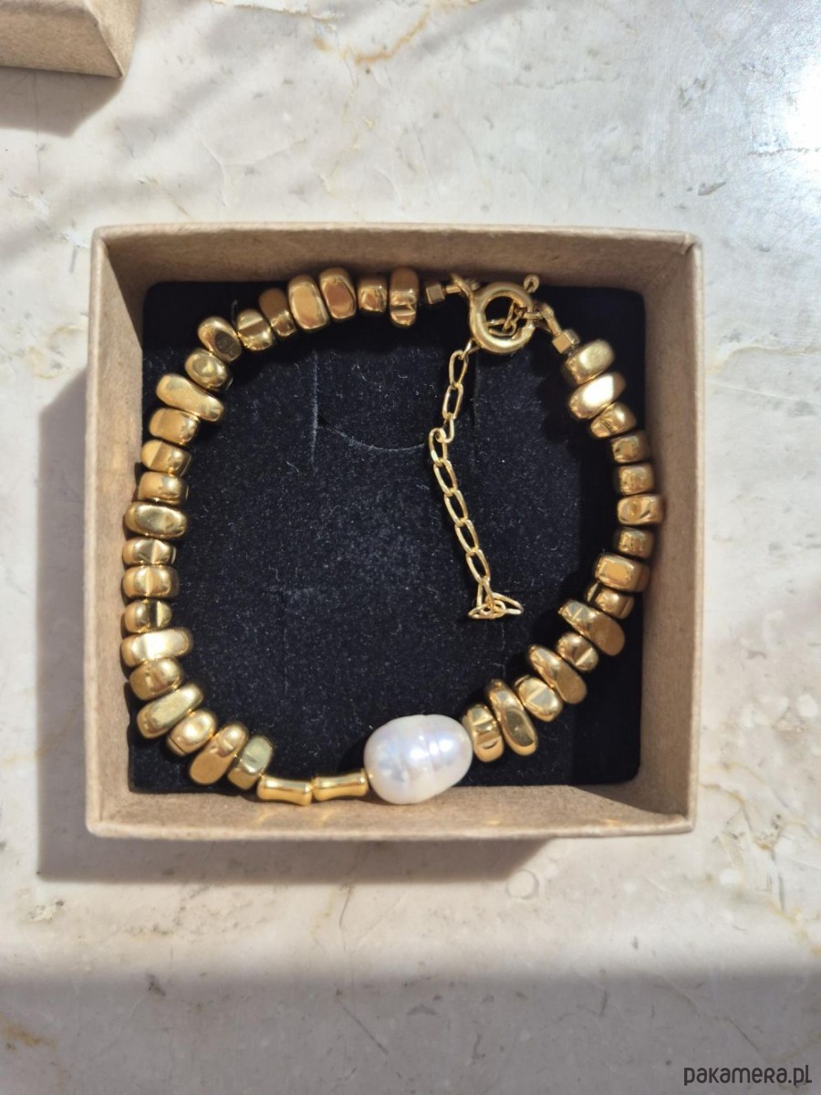 Bransoletka ze złotych hematytów kropel z dużą perłą