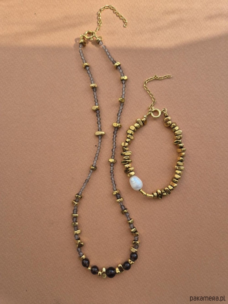 Kamienie: perła naturalna, złote hematyty