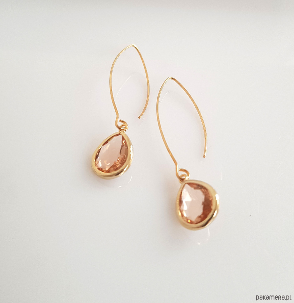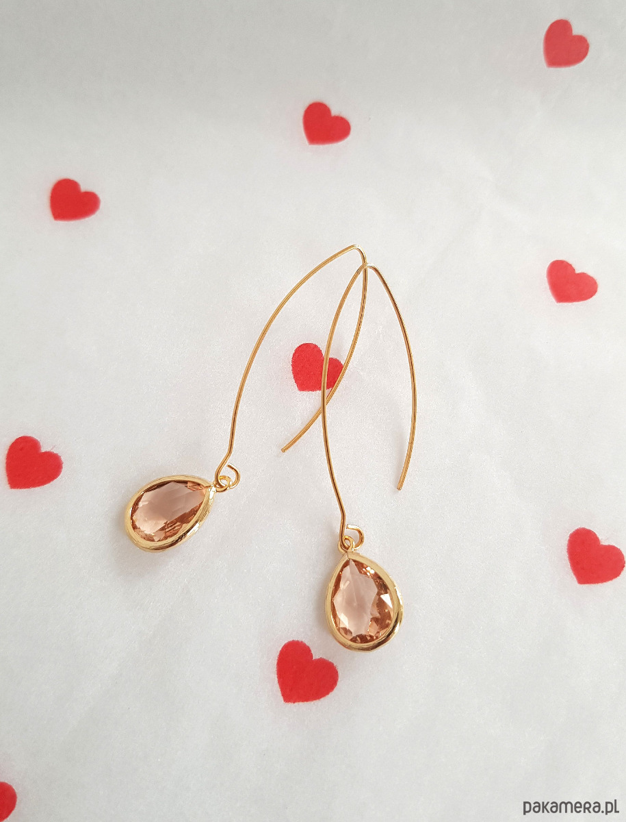 Wykonane z mosiądzu platerowanego złotem oraz brzoskwiniowego kryształu, który pięknie współpracuje ze światłem.
