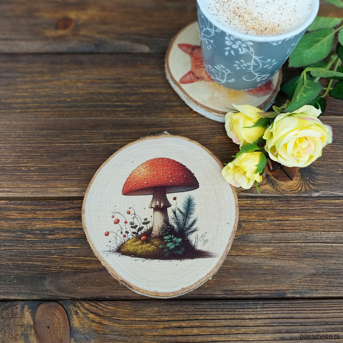 Brzozowa podkładka pod kubek - muchomor