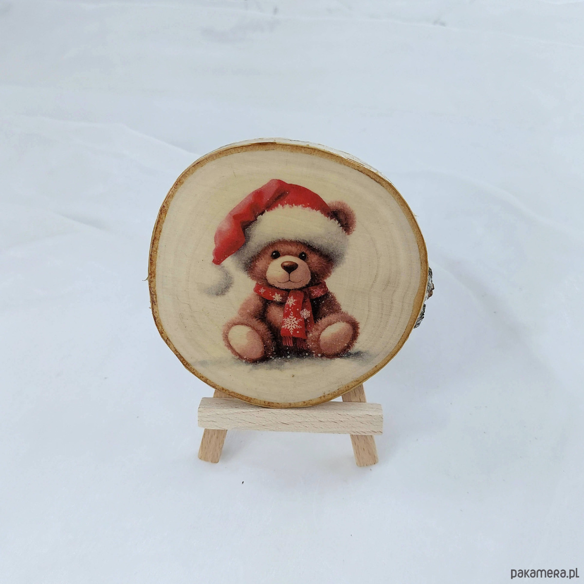 Brzozowa podkładka pod kubek, świąteczna zawieszka - miś