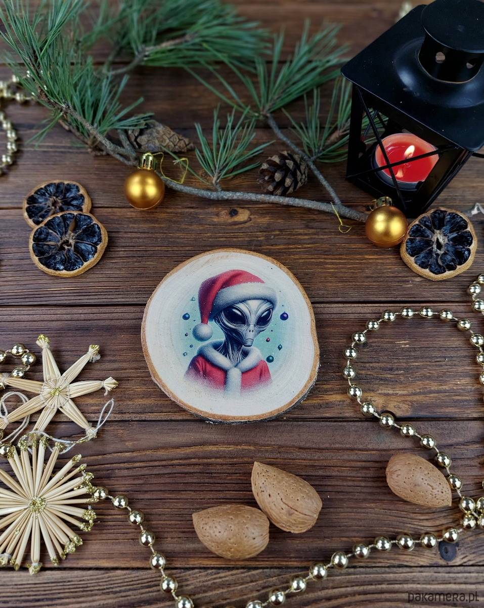 Brzozowa podkładka pod kubek, świąteczna zawieszka - UFO