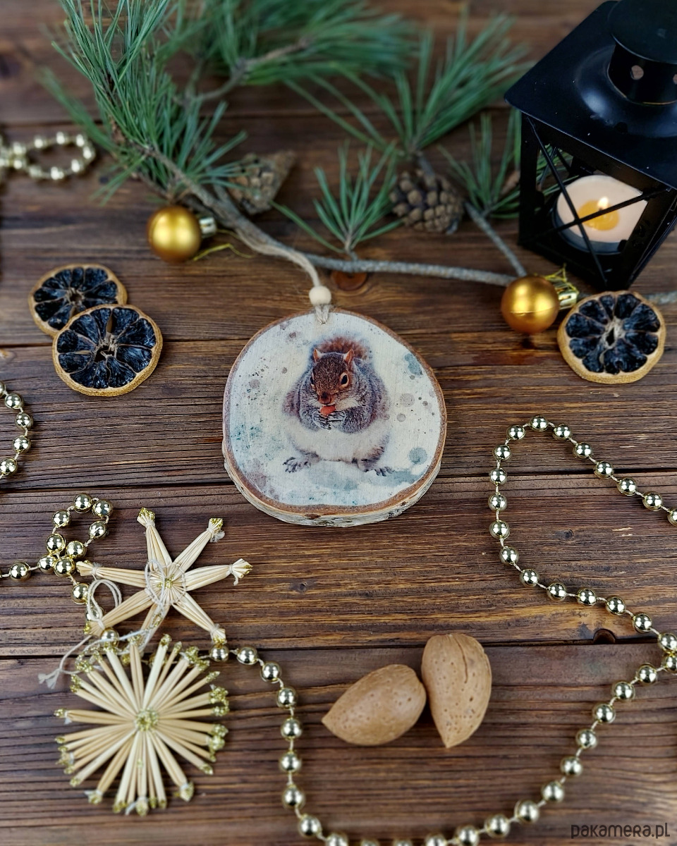 Brzozowa podkładka pod kubek, świąteczna zawieszka - wiewiórka