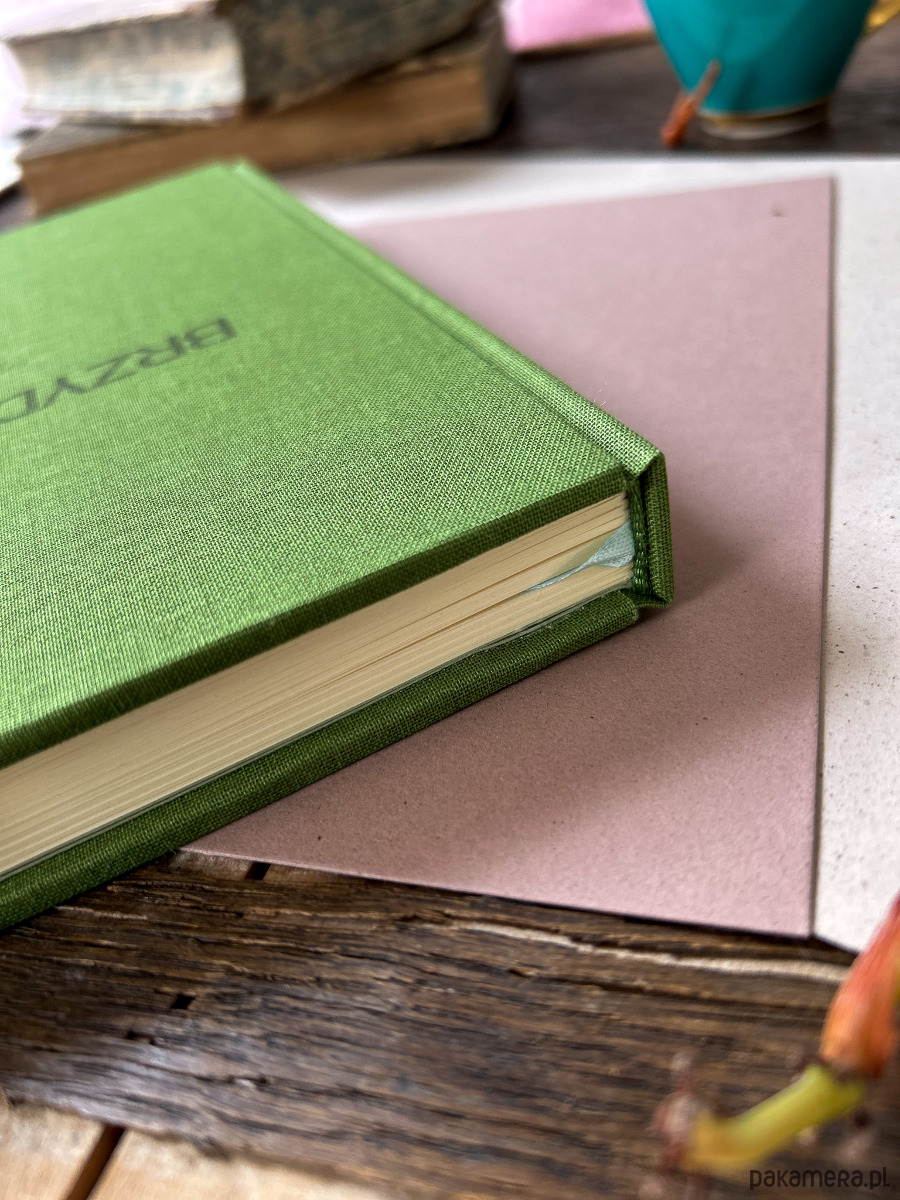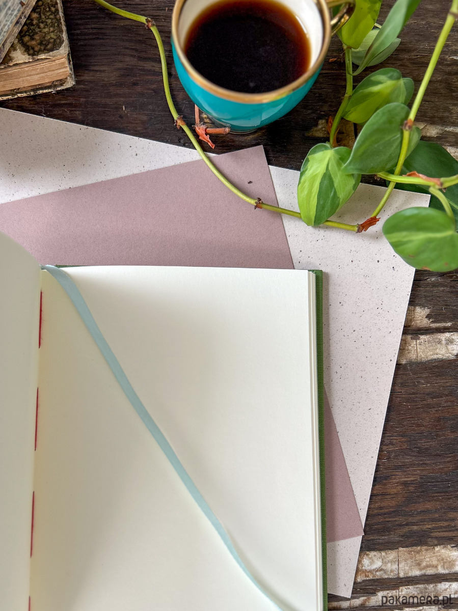 Oprawa została wykonana w technice Bradel, dzięki czemu jest trwała i subtelna w formie. W środku znajduje się 160 stron lekko szorstkiego, niepowlekanego papieru w delikatnym kremowym odcieniu. To papier przyjemny w dotyku i dobrze współpracujący z różnymi narzędziami pisarskimi.
