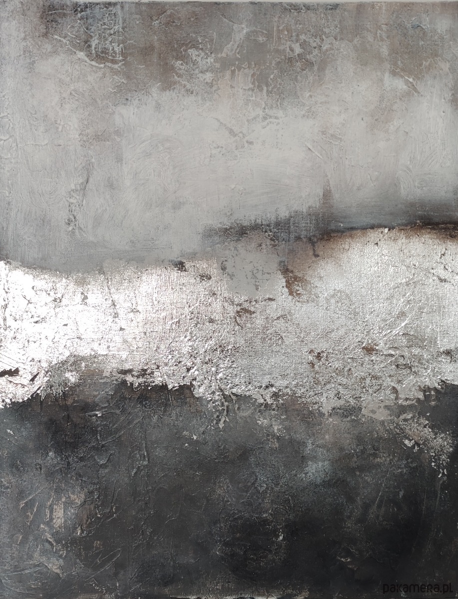 Abstrakcyjny obraz, ręcznie malowany, SREBRO