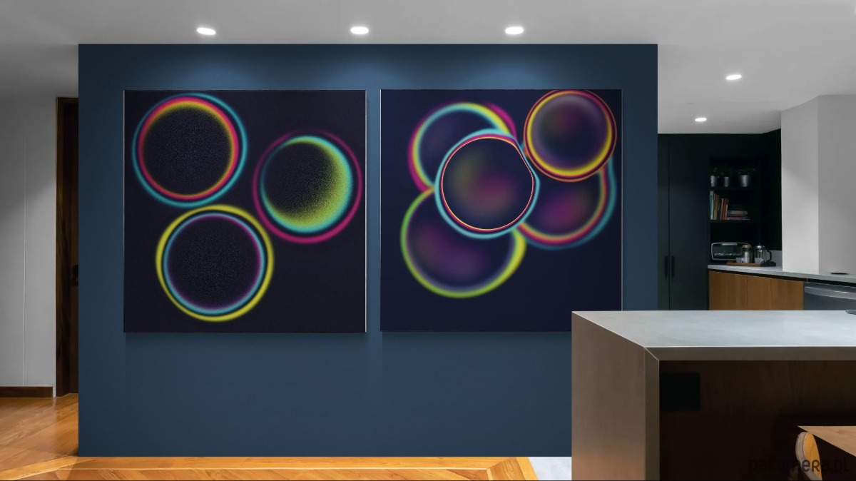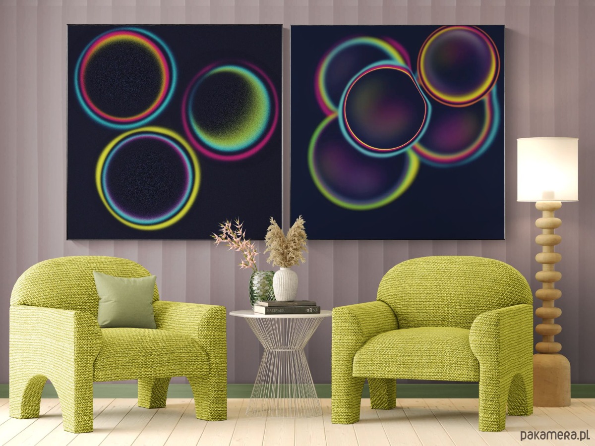 Bubble twins, 2 autorskie obrazy graficzne o wymiarach 50x50cm.