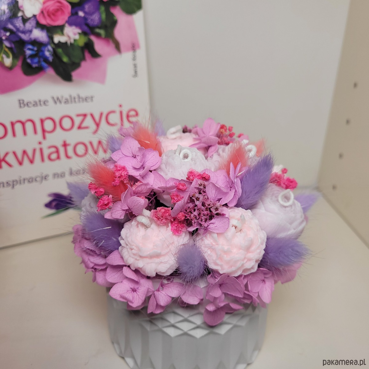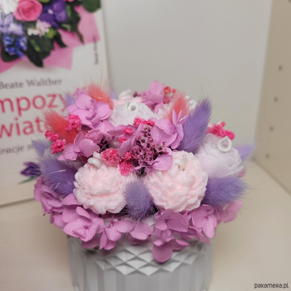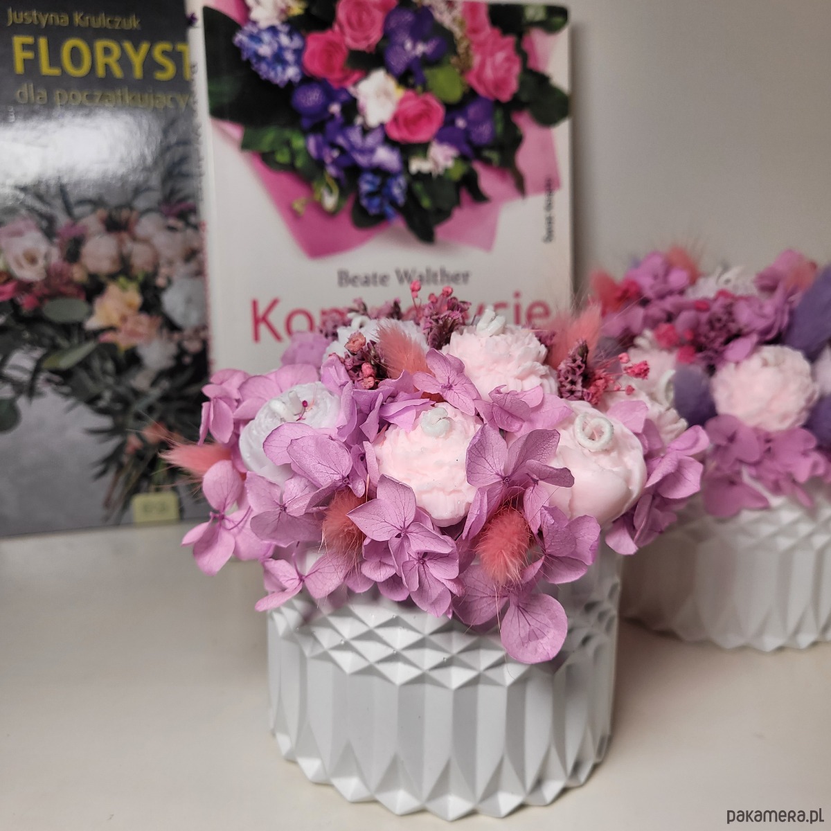 Doniczka wysokość 7 cm. Z bukietem 12 cm.