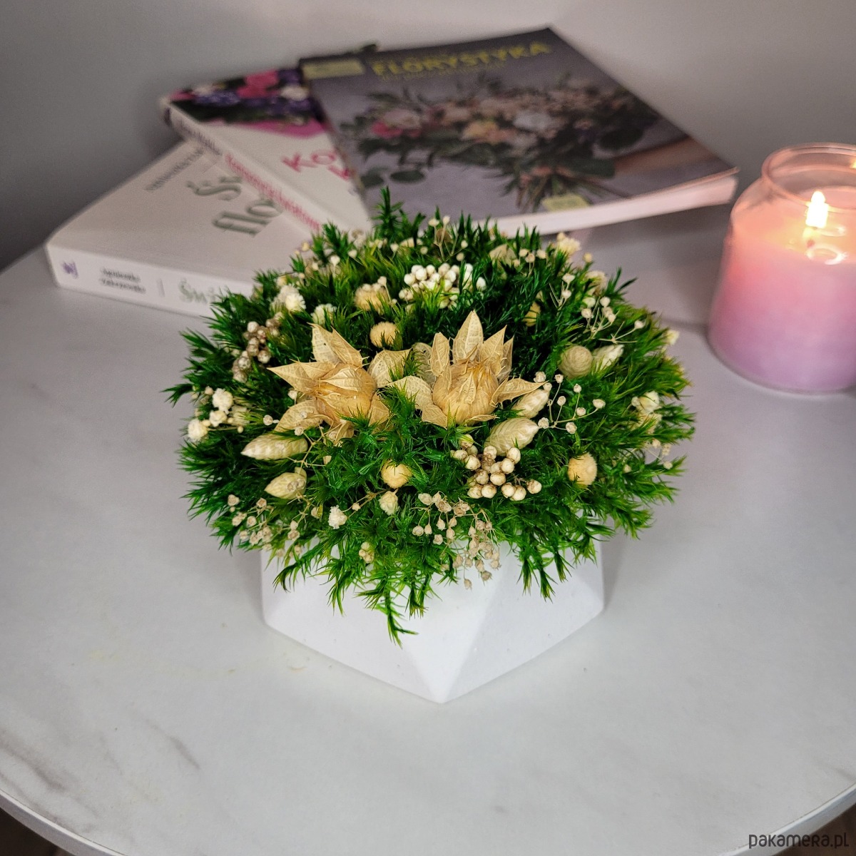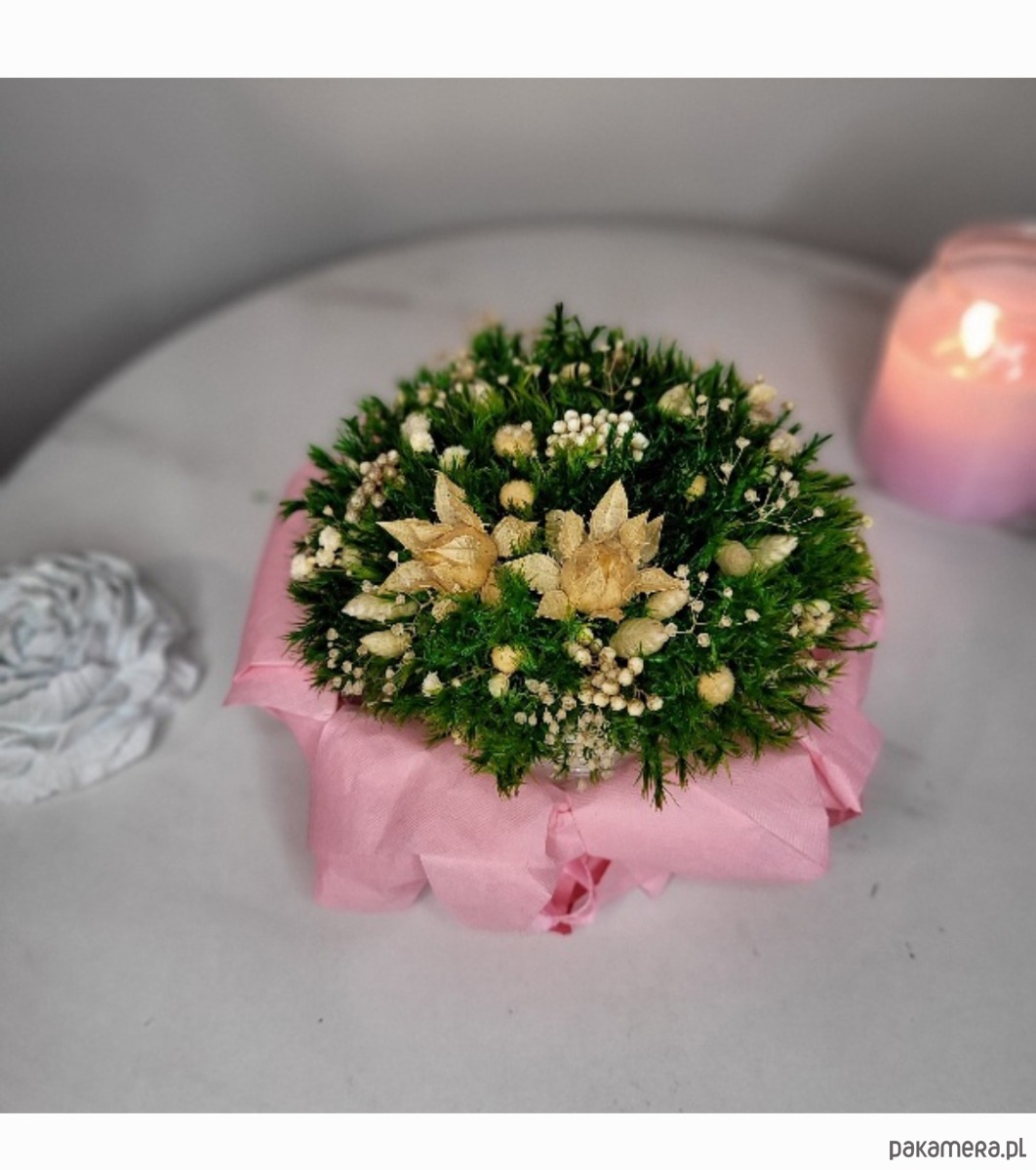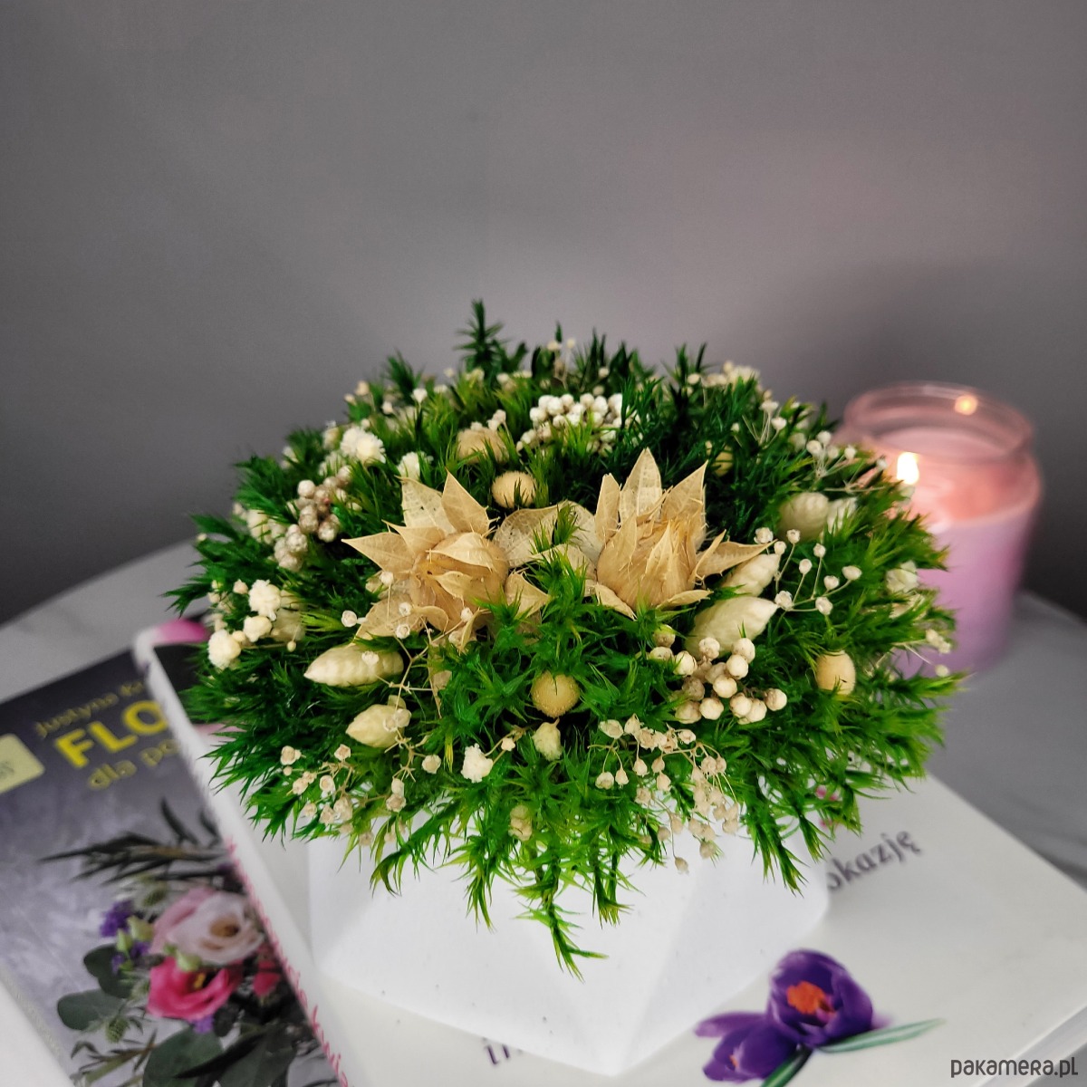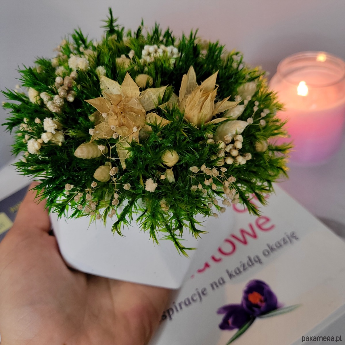 Bukiet w doniczce z stabilizowanym mchem i kwiatami