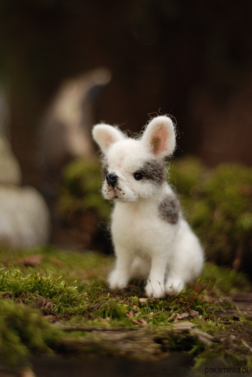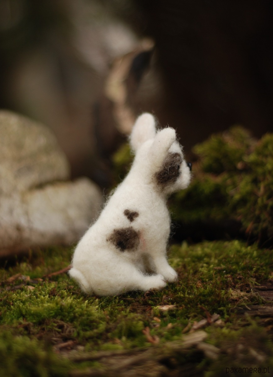 Pies wykonany metodą filcowania na sucho z wełny merynos.