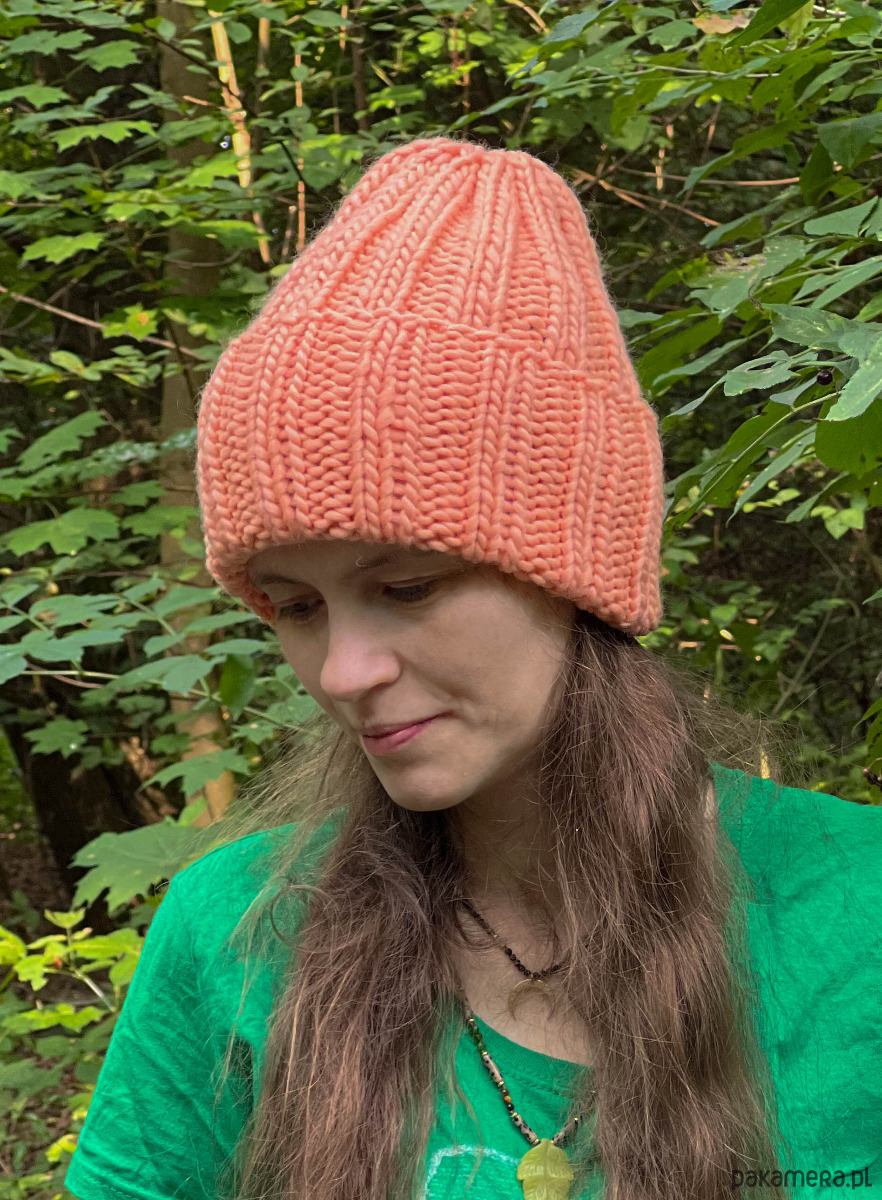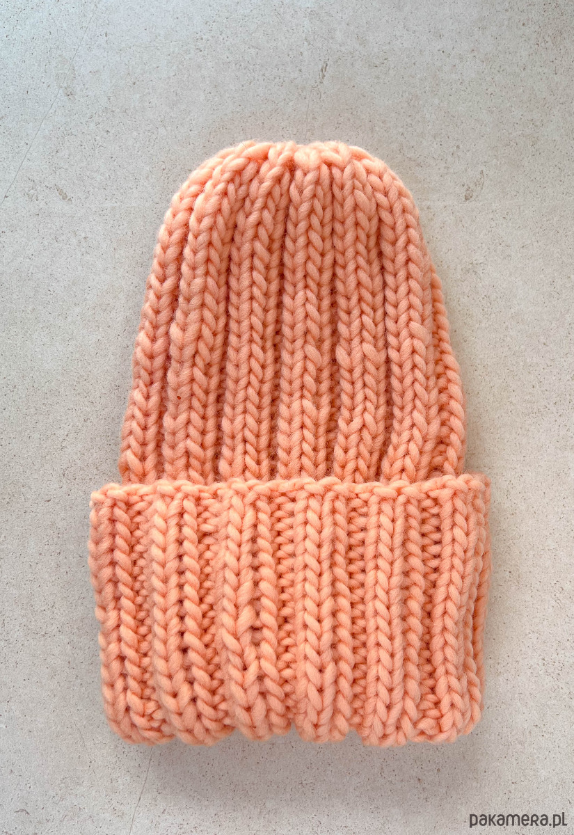 Rozmiar uniwersalny, czapka jest wykonana wzorem ściągaczowym i dopasowuje się idealnie do głowy. Długość ok. 37 cm