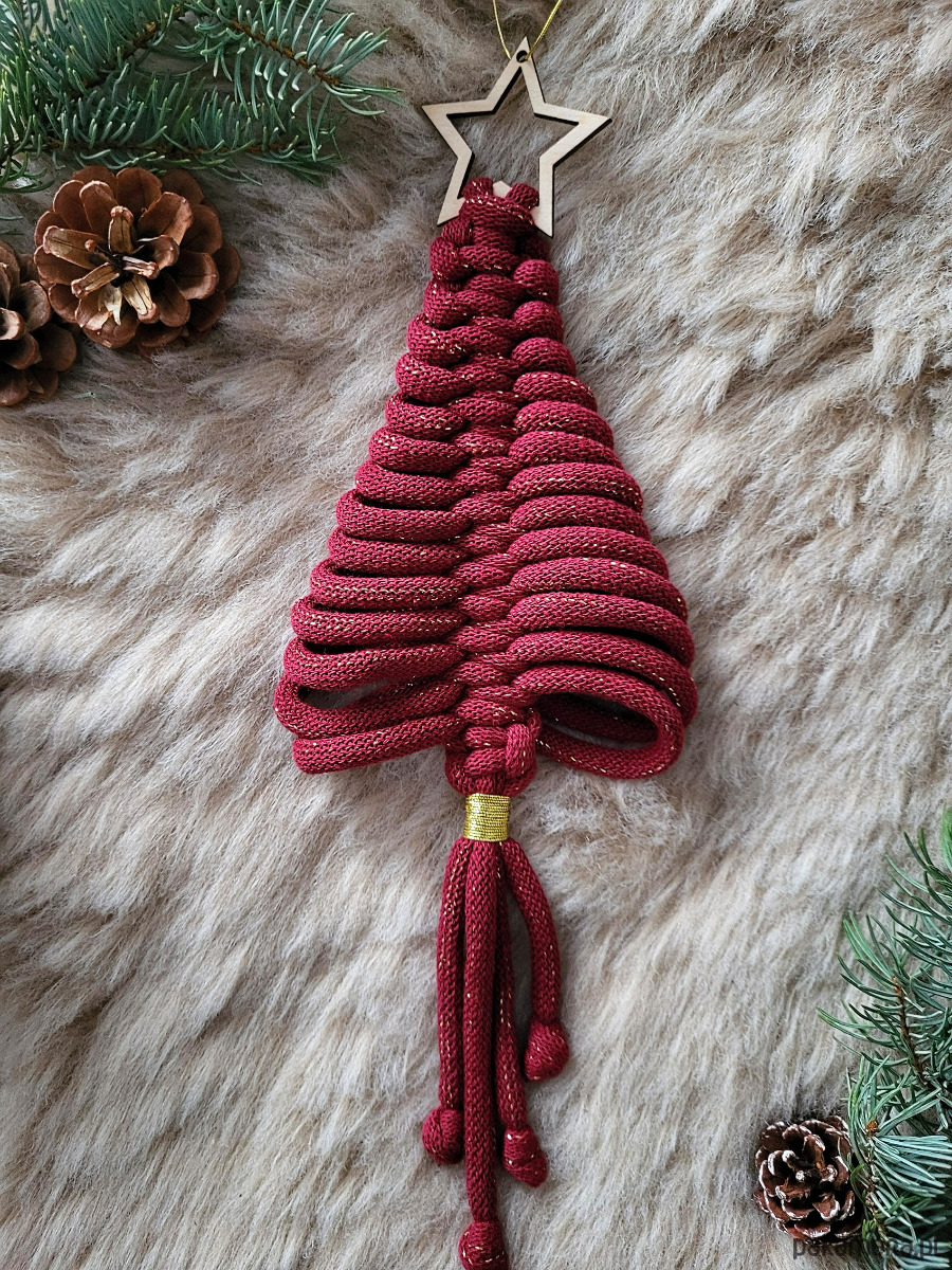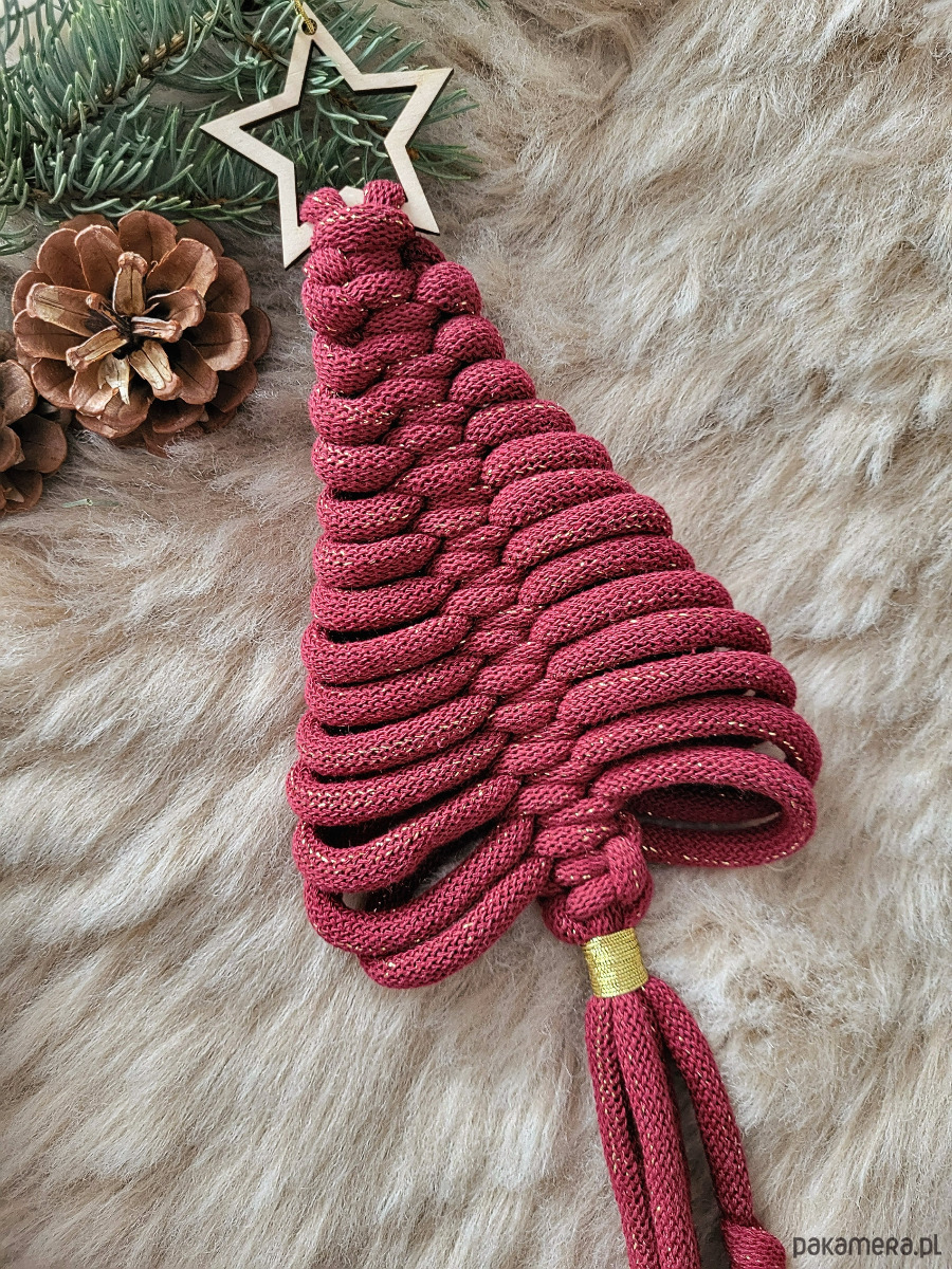 Burgundowa choinka- dekoracja na okno, nad kominek na święta