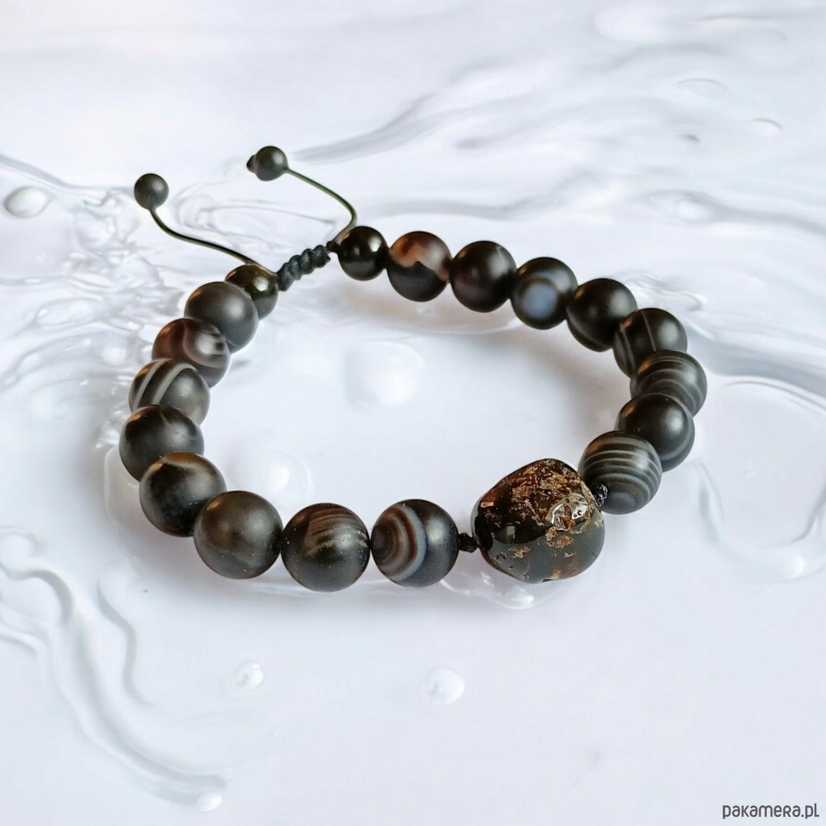 BURSZTYN, agat UNIKAT unikatowa bransoletka XL -XXL