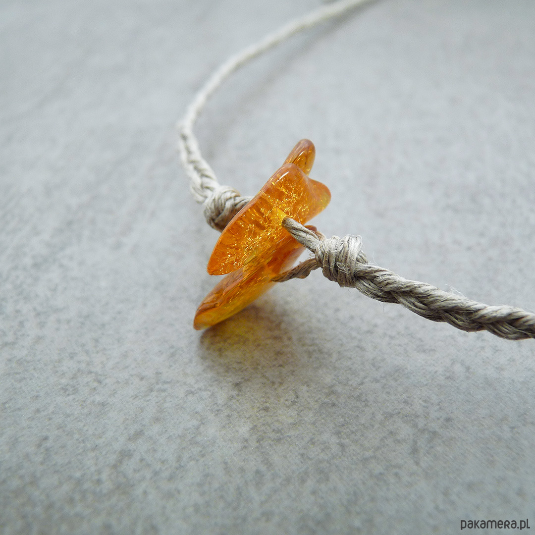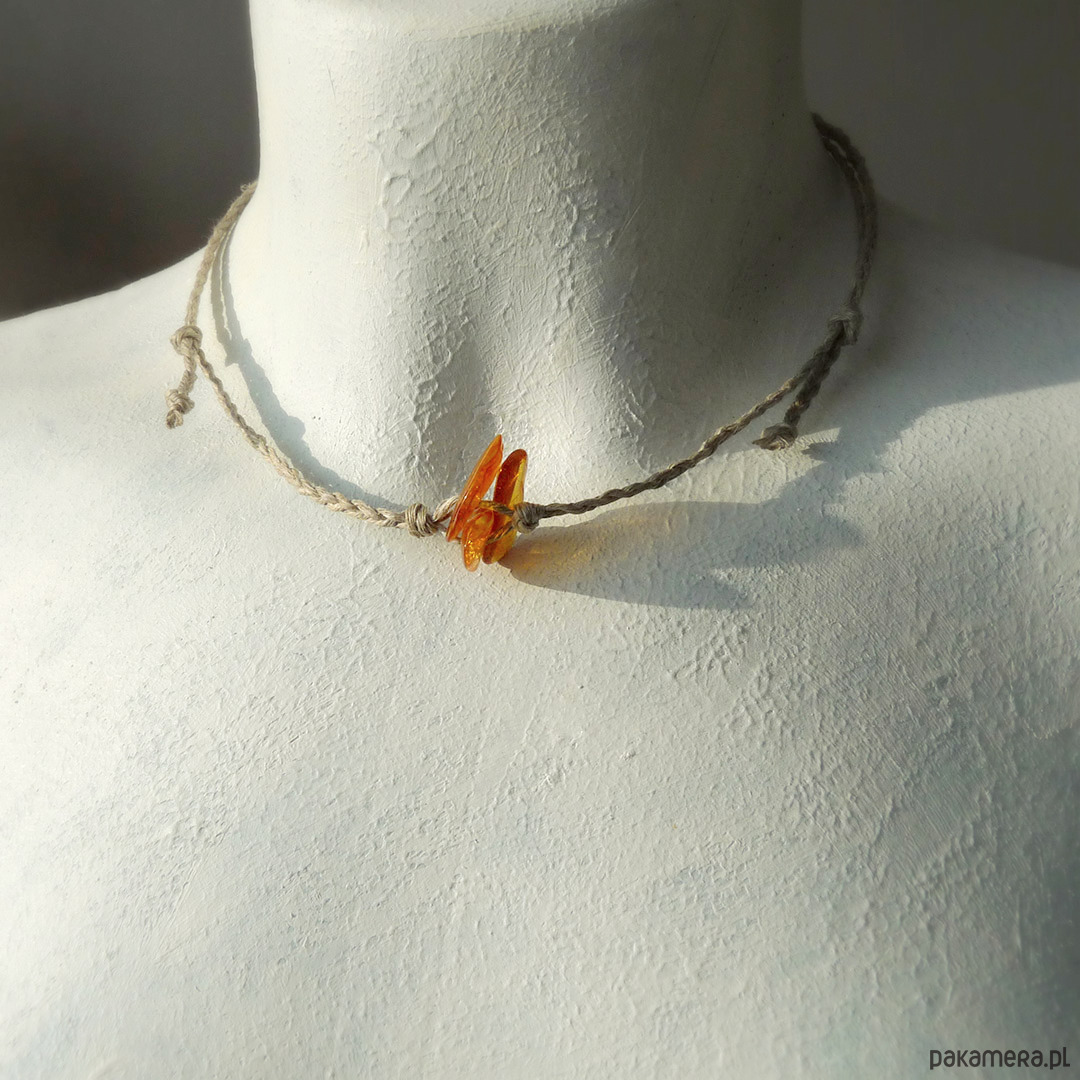 Wygodny, lekki, minimalistyczny naszyjnik wypleciony z nitek naturalnego lnu.