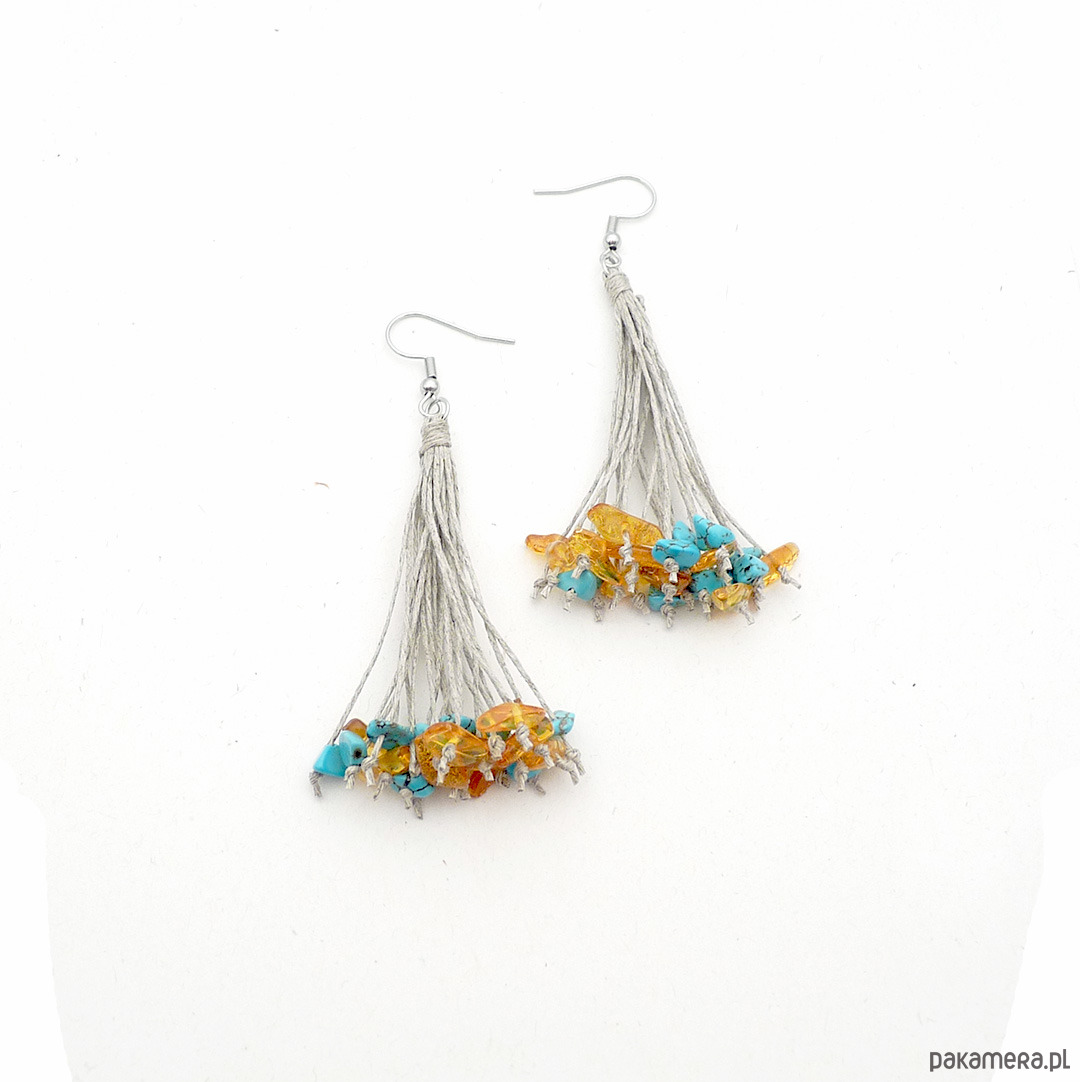 Bursztyn i howlit kolczyki lniane