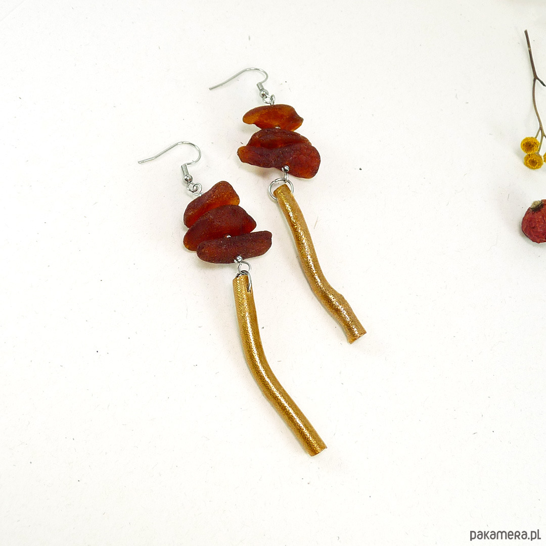 Oryginalne kolczyki z matowym bursztynem bałtyckim