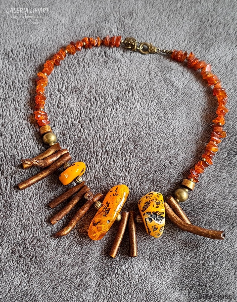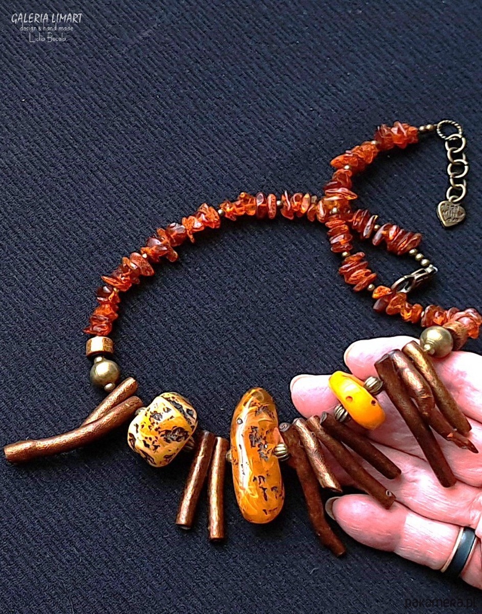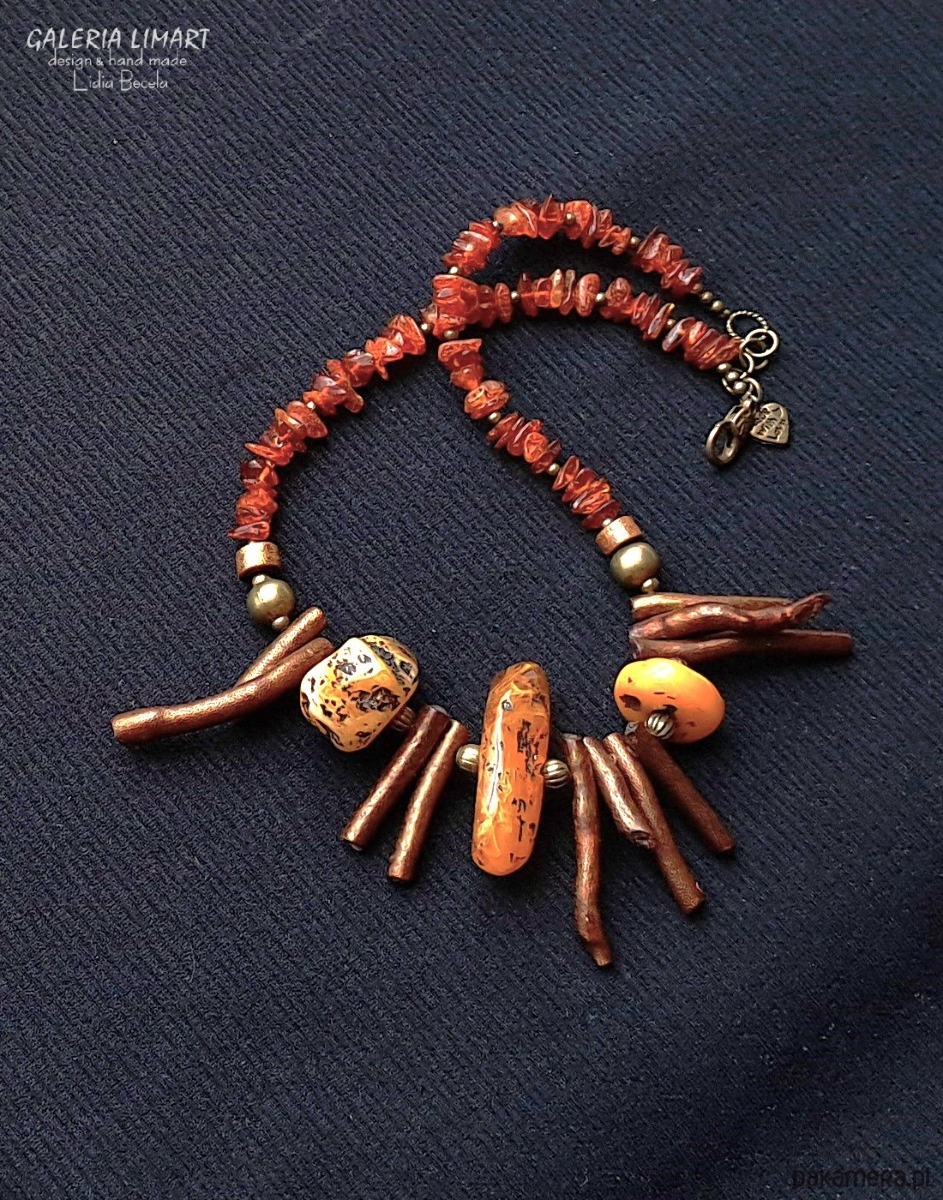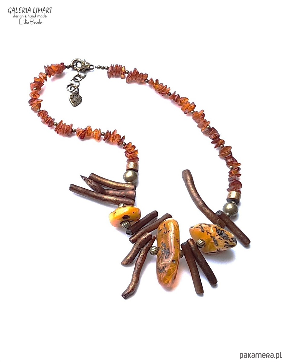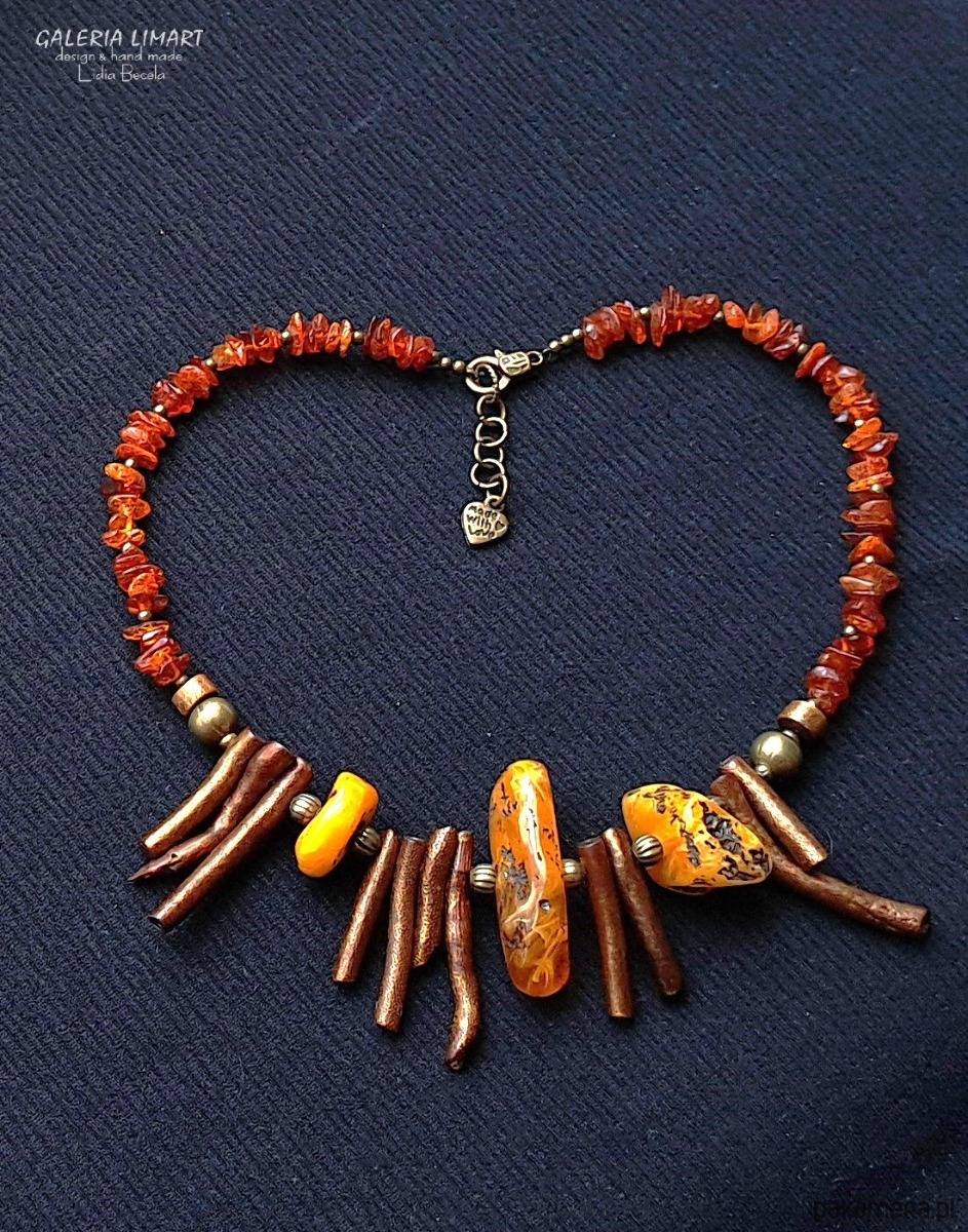 Bursztyn copal i koral. Naszyjnik unikatowy ręcznie robiony PREZENT LUX