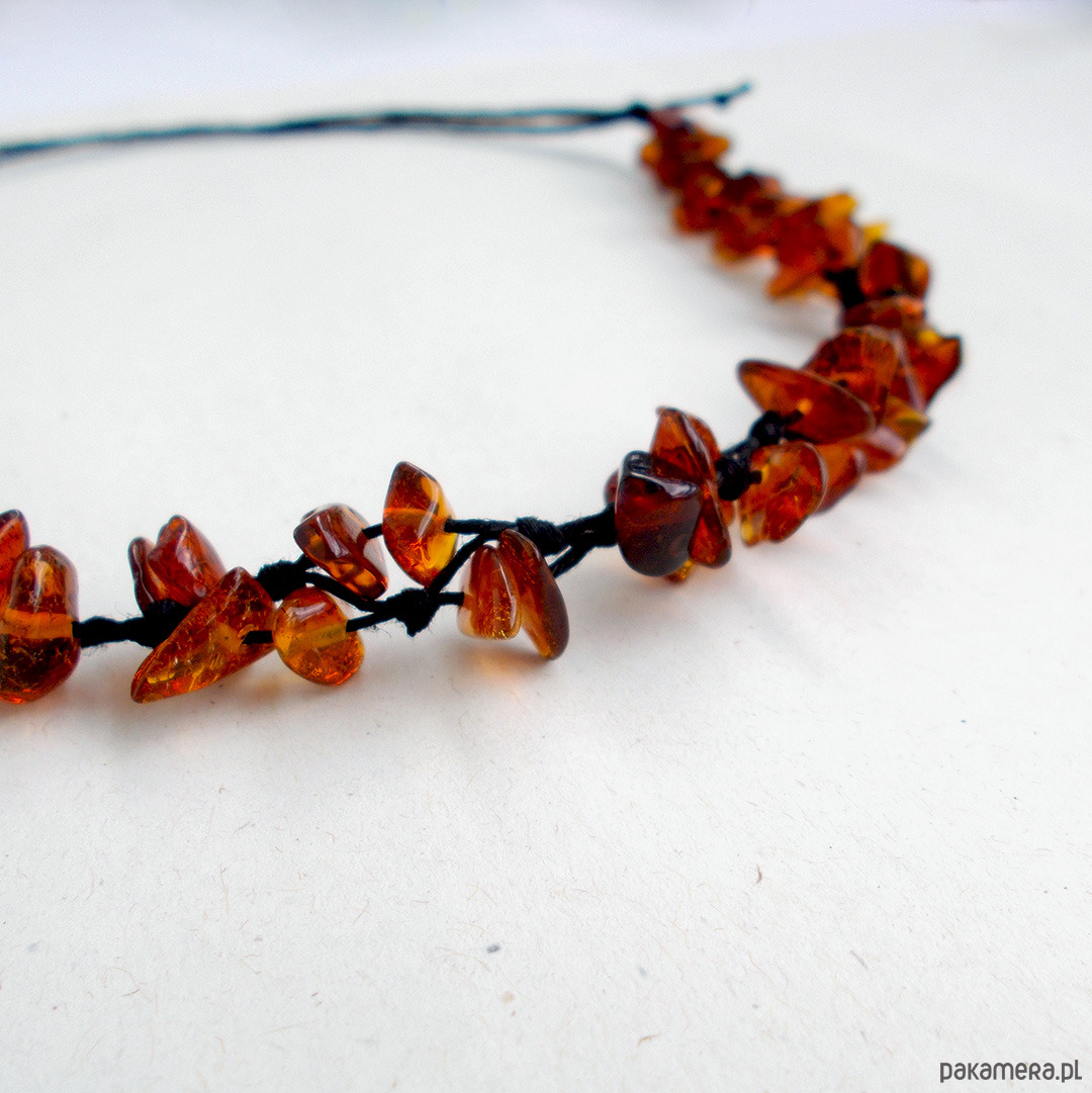 bursztyn bałtycki miodowy 0,5 - 1,5 cm, len czarny