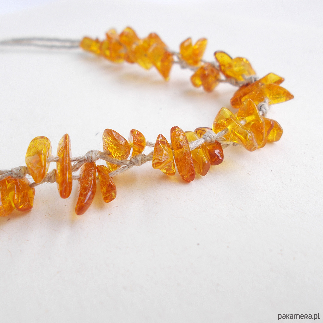 bursztyn bałtycki miodowy 0,5 - 1,4 cm, len naturalny