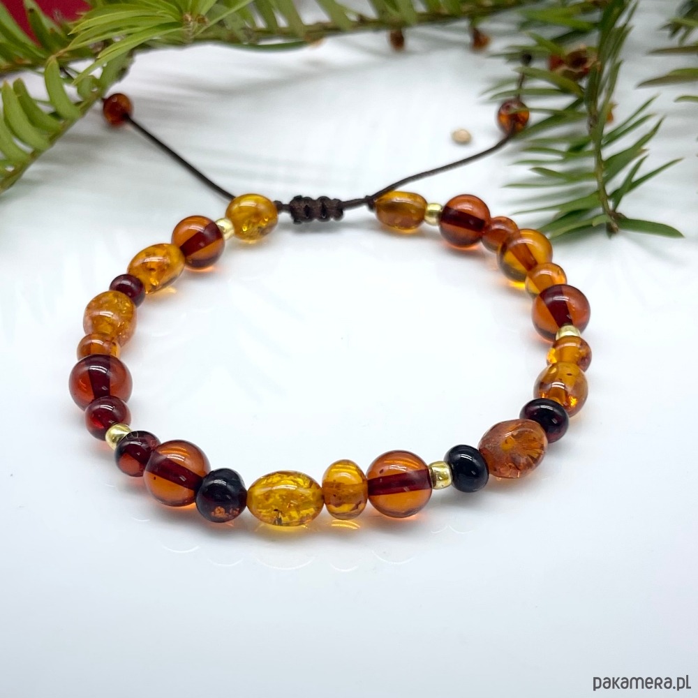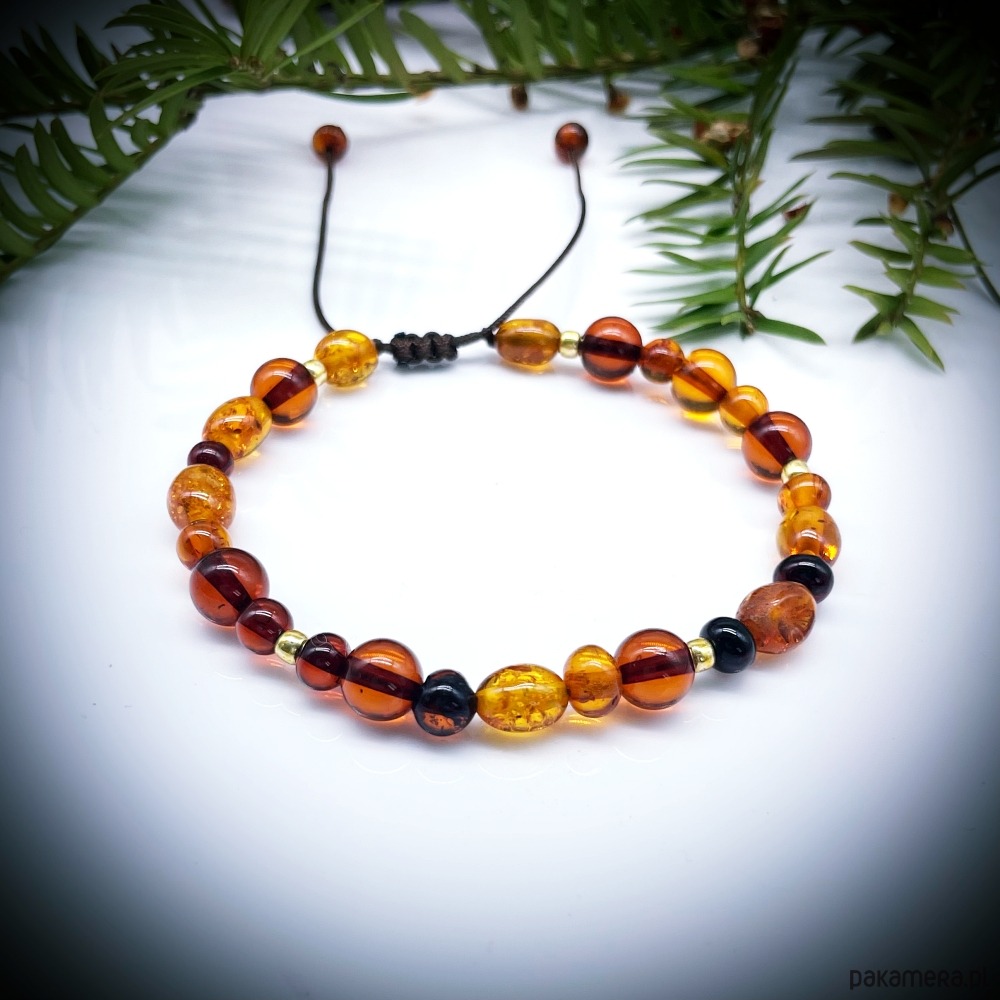 Bransoletka wykonana z nieregularnych kuleczek i oliwek bursztynu bałtyckiego. Prosta a jednocześnie bardzo efektowna i wygodna w noszeniu.