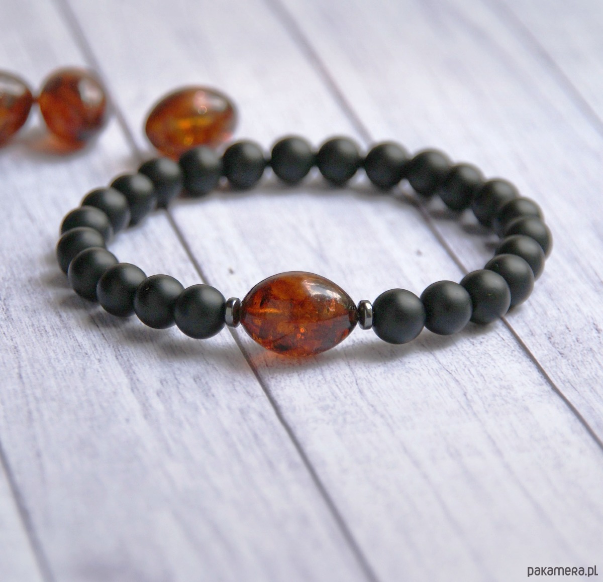 limitowana edycja męskich bransolet w wersji premium - wykonanych z najwyższej jakości minerałów, połączonych z naturalnym czarnym bursztynem bałtyckim.