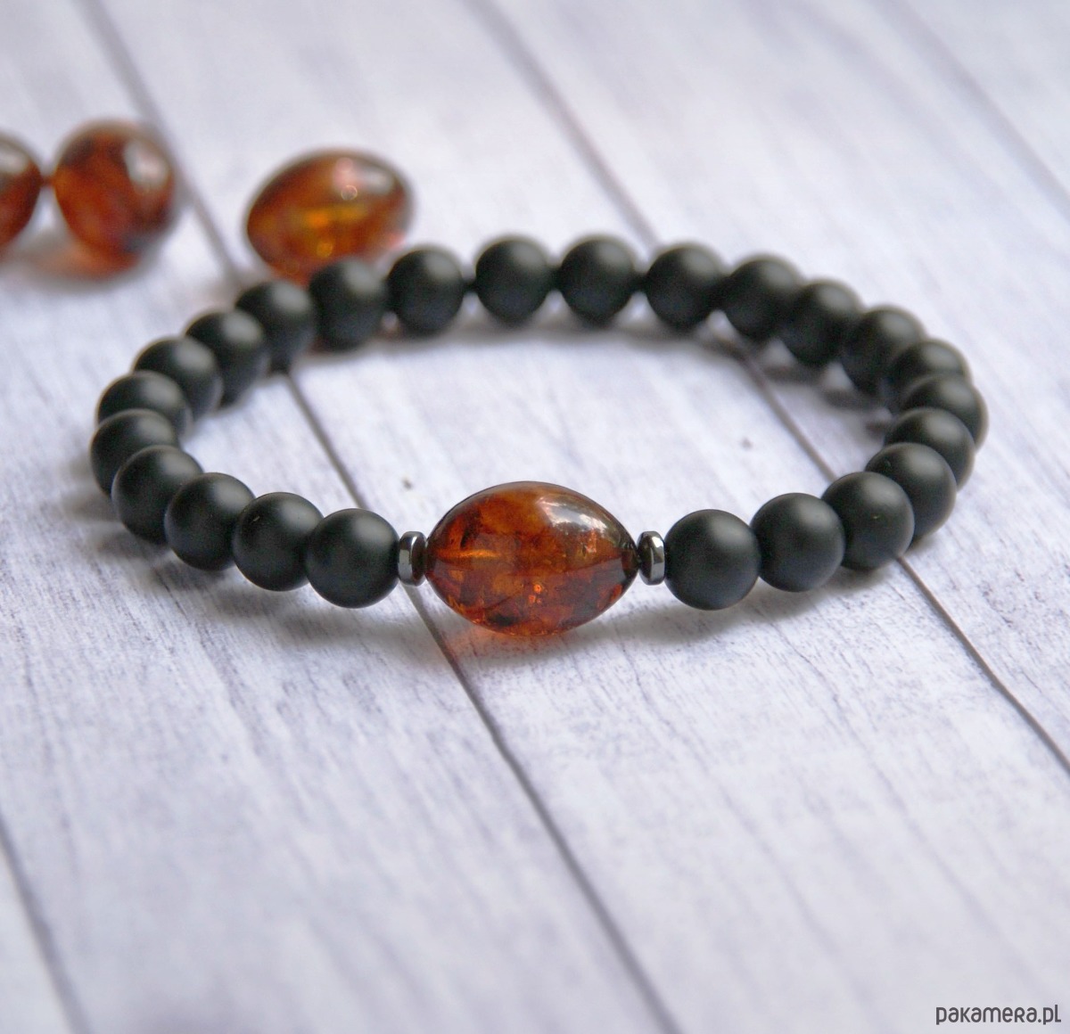 limitowana edycja męskich bransolet w wersji premium - wykonanych z najwyższej jakości minerałów, połączonych z naturalnym czarnym bursztynem bałtyckim.