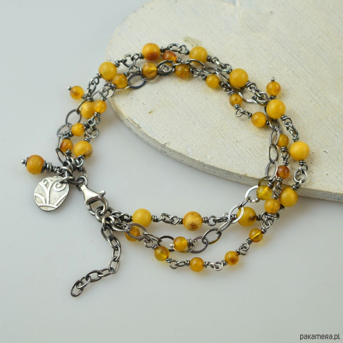 Bursztyn w srebrze - bransoletka