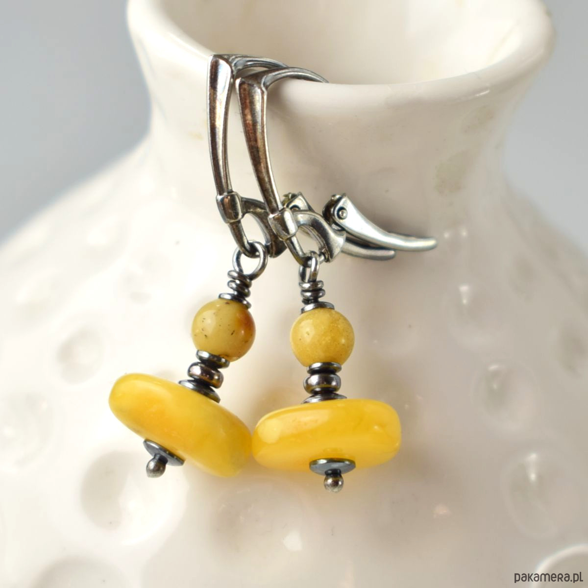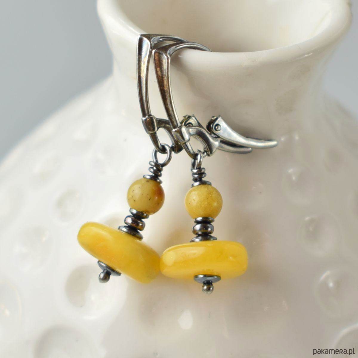 Użyte materiały: bursztyn, srebro 925 oksydowane.